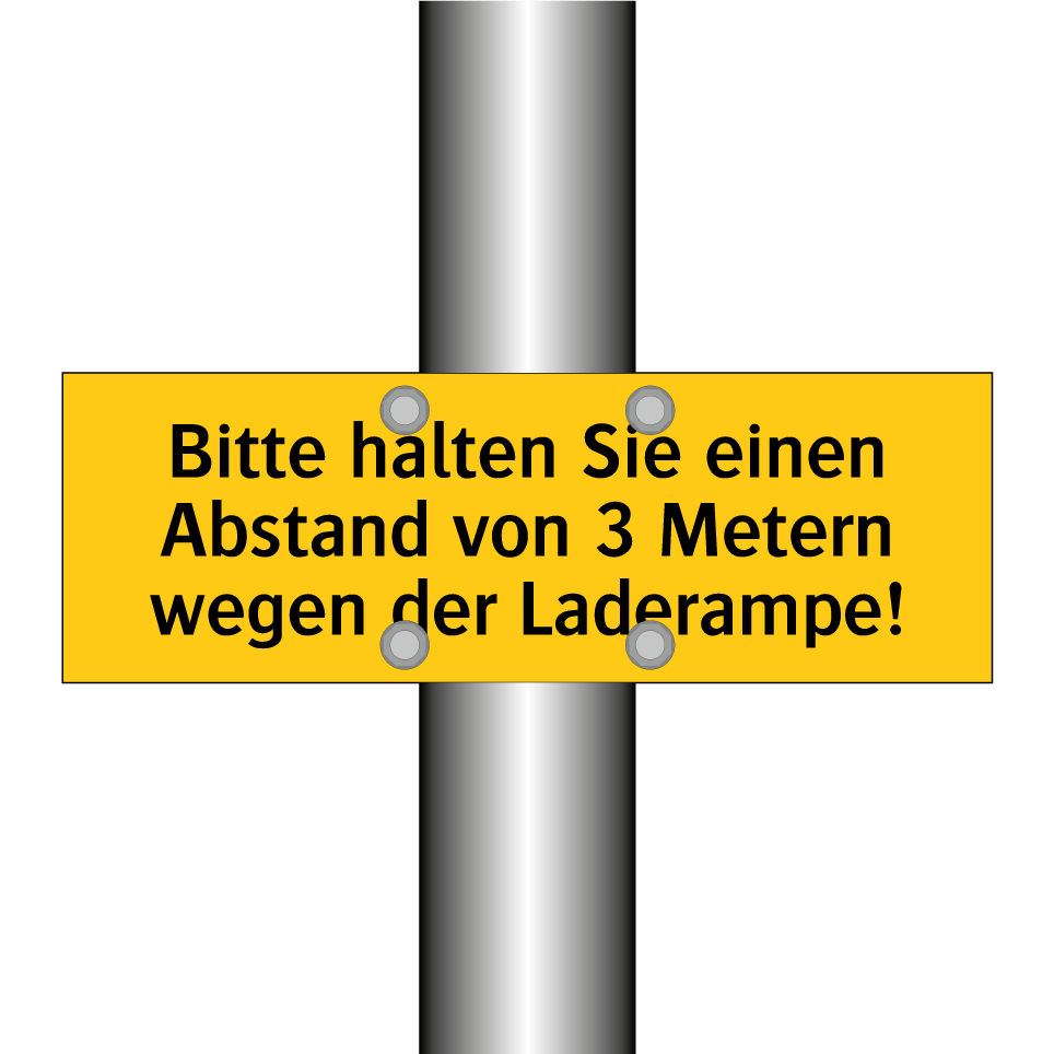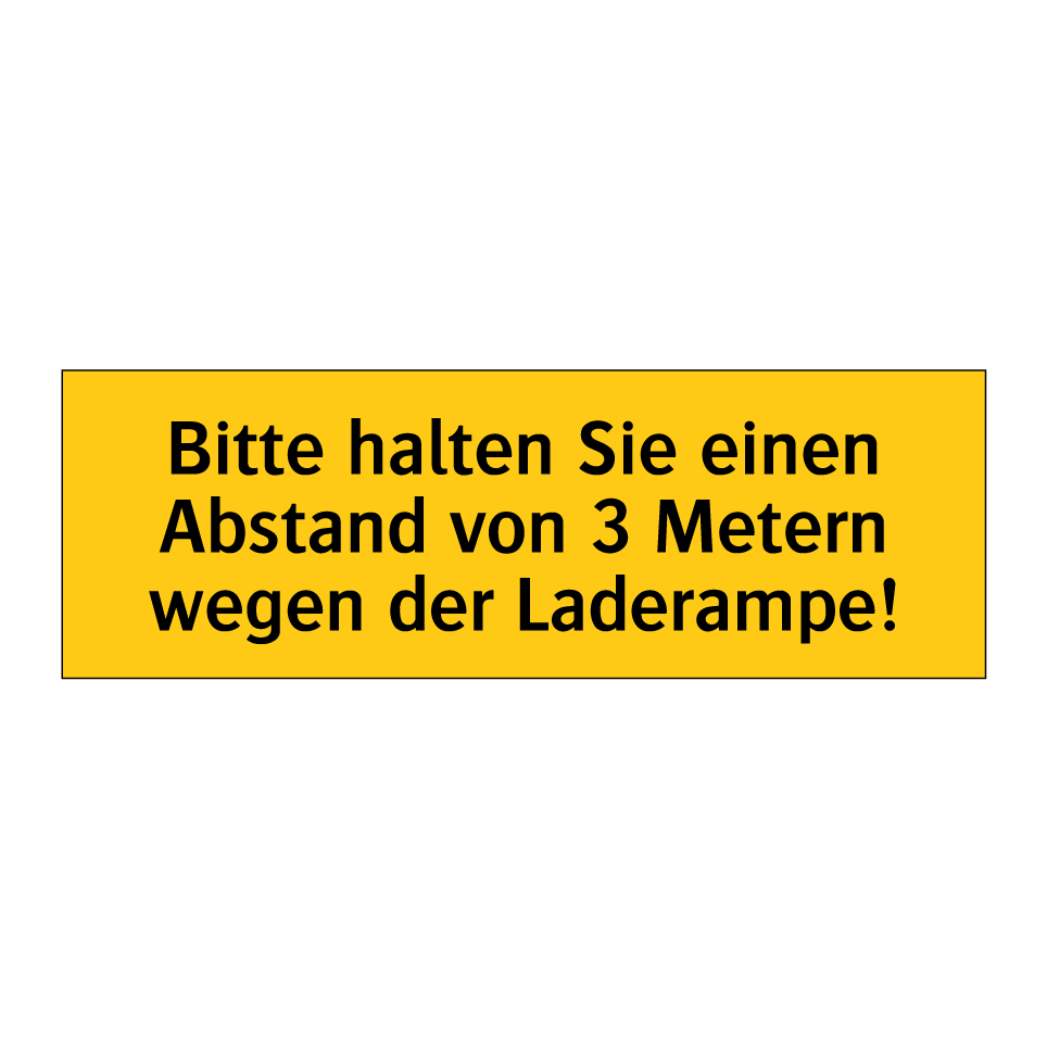 Warnschild mit dem Text Bitte halten Sie einen Abstand von 3 Metern wegen der Laderampe!
