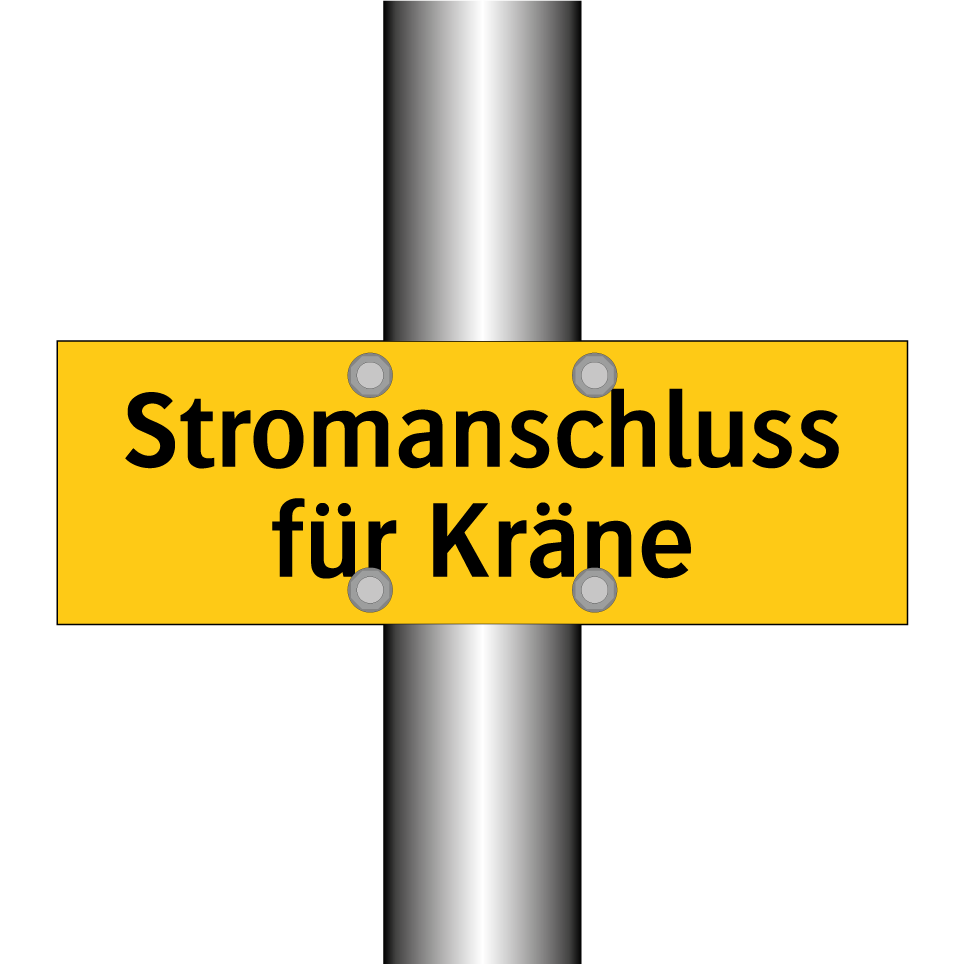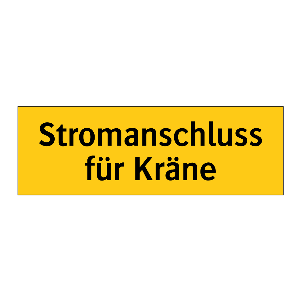 Warnschild mit dem Text Stromanschluss für Kräne