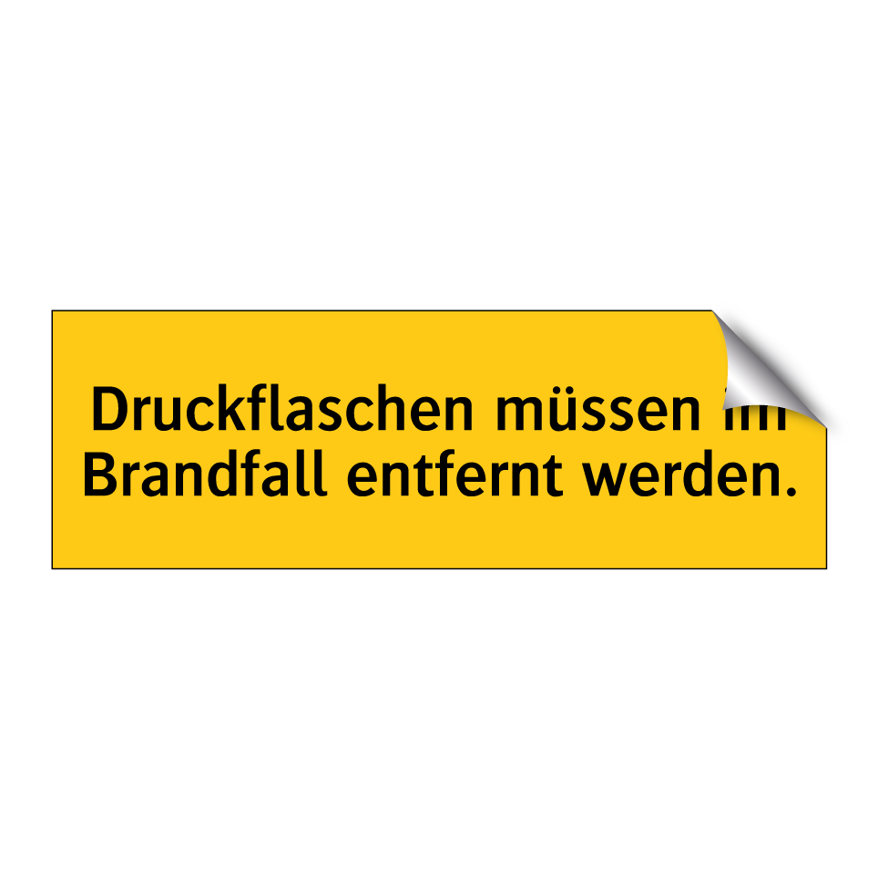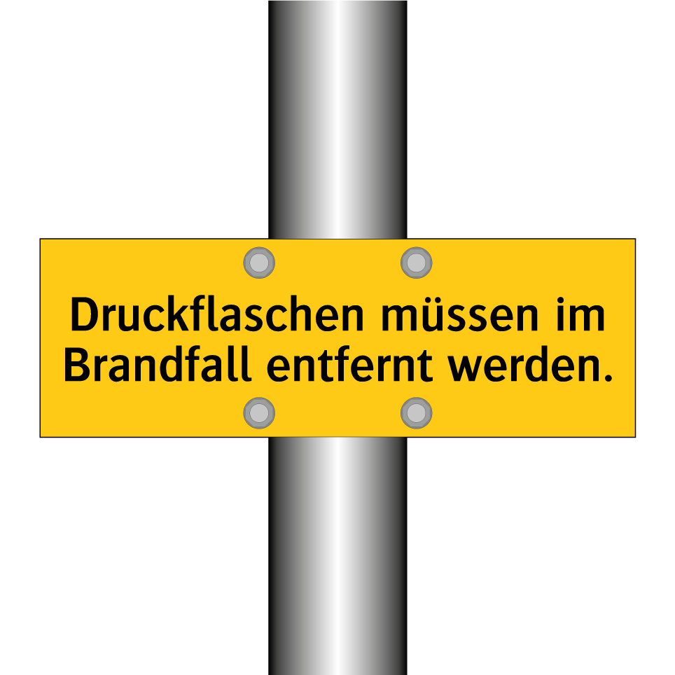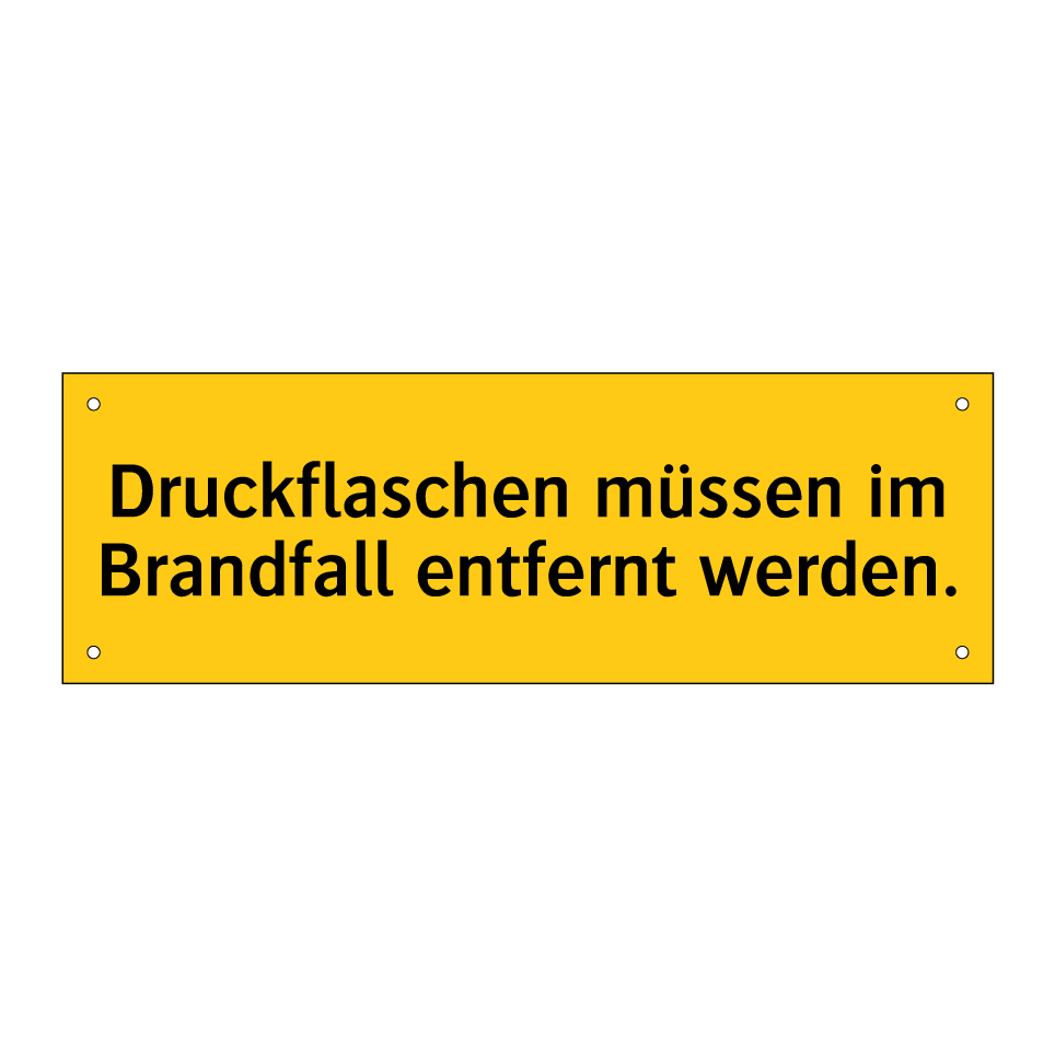 Warnschild mit dem Text Druckflaschen müssen im Brandfall entfernt werden.