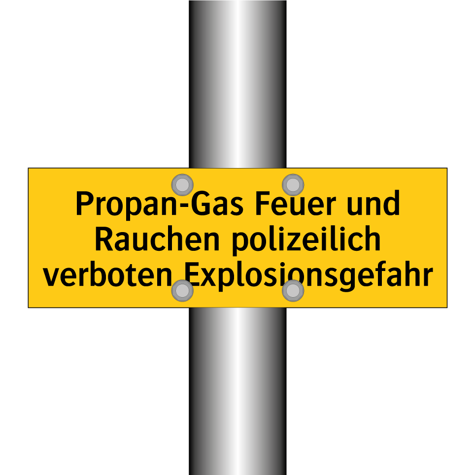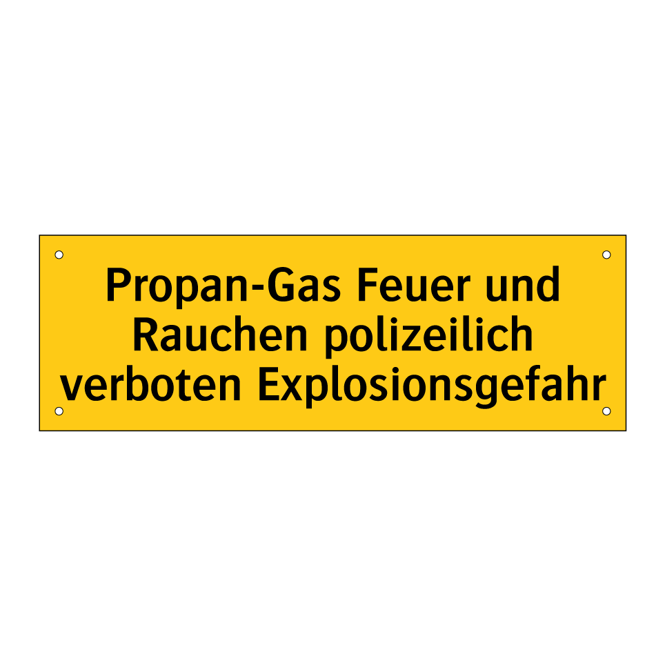 Warnschild mit dem Text Propan-Gas Feuer und Rauchen polizeilich verboten Explosionsgefahr