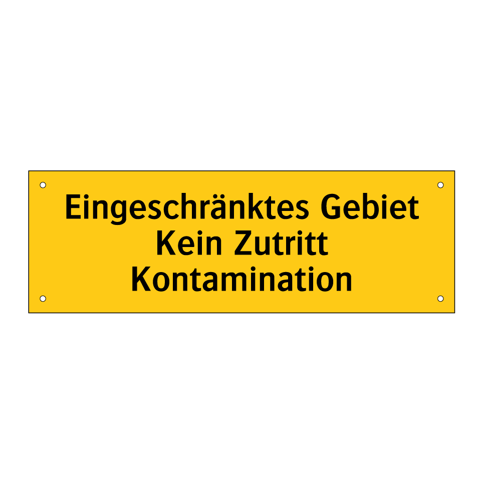 Warnschild mit dem Text Eingeschränktes Gebiet Kein Zutritt Kontamination