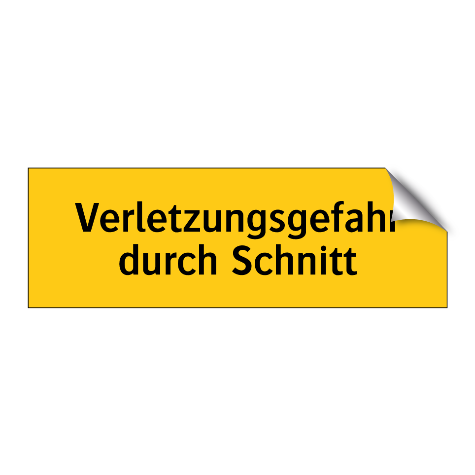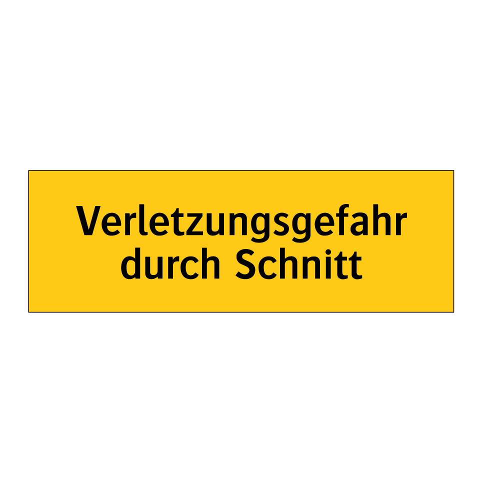 Warnschild mit dem Text Verletzungsgefahr durch Schnitt