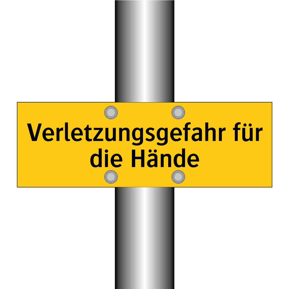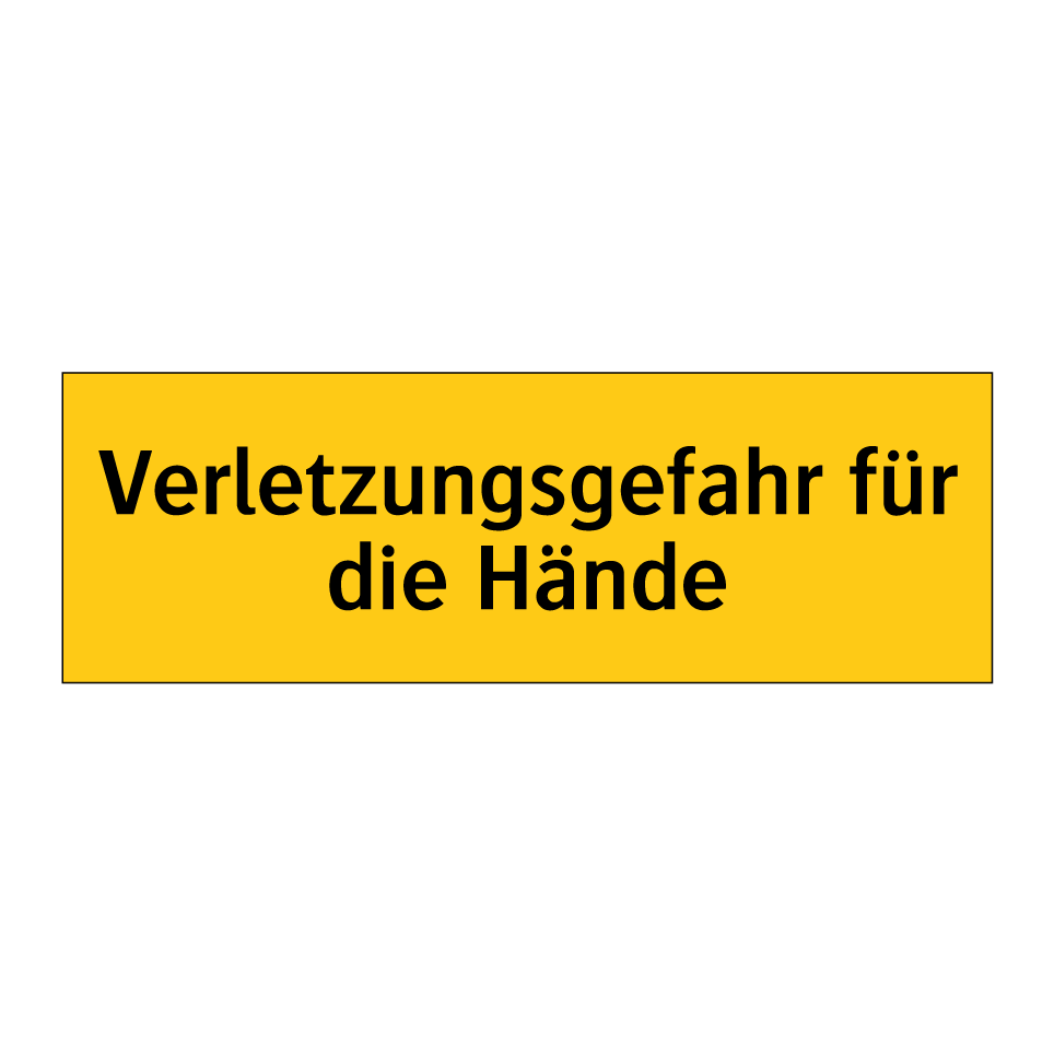 Warnschild mit dem Text Verletzungsgefahr für die Hände
