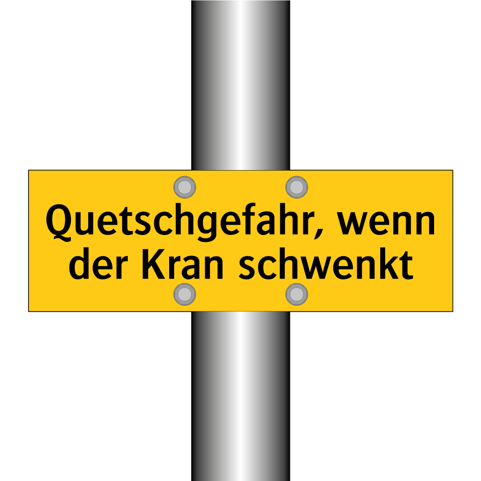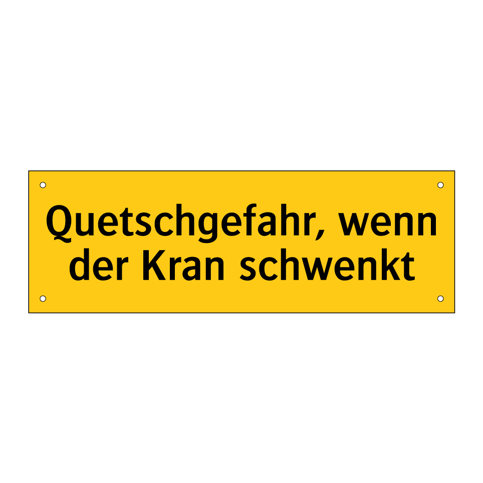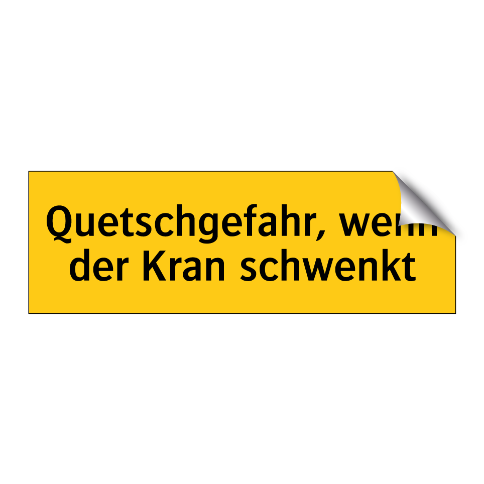 Diese auffällige Warnschild mit gelbem Hintergrund und schwarzer Schrift ist ein unverzichtbares Sicherheitsmerkmal in Bereichen, in denen Kräne im Einsatz sind. Sie dient dazu, Personen auf die potenzielle Gefahr von Quetschungen hinzuweisen, die auftreten können, wenn der Kran schwenkt. Ideal für Baustellen, Lagerhallen oder industrielle Umgebungen, wo Kräne regelmäßig verwendet werden. Die Warnschilder sollten an gut sichtbaren Stellen angebracht werden, um sicherzustellen, dass alle Mitarbeiter und Besucher rechtzeitig gewarnt werden. Durch die klare und prägnante Botschaft trägt das Schild zur Vermeidung von Unfällen bei und fördert ein sicheres Arbeitsumfeld.