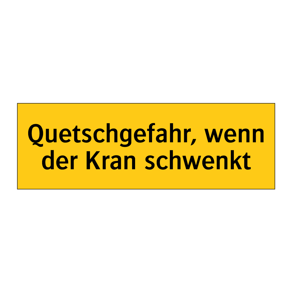 Warnschild mit dem Text Quetschgefahr, wenn der Kran schwenkt