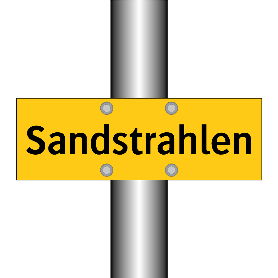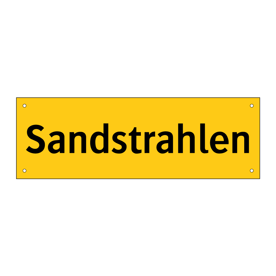 Warnschild mit dem Text Sandstrahlen
