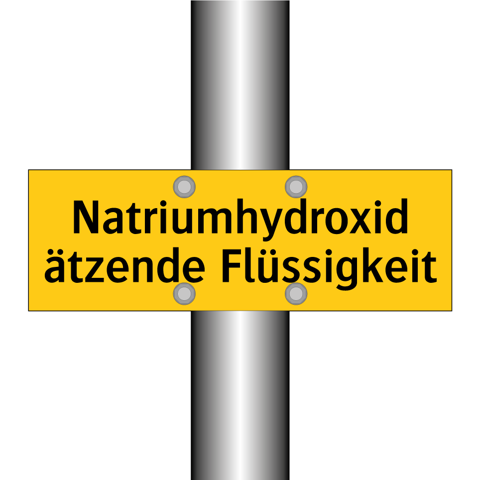 Warnschild mit dem Text Natriumhydroxid ätzende Flüssigkeit