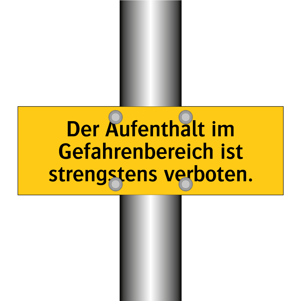 Warnschild mit dem Text Der Aufenthalt im Gefahrenbereich ist strengstens verboten.