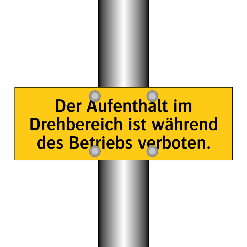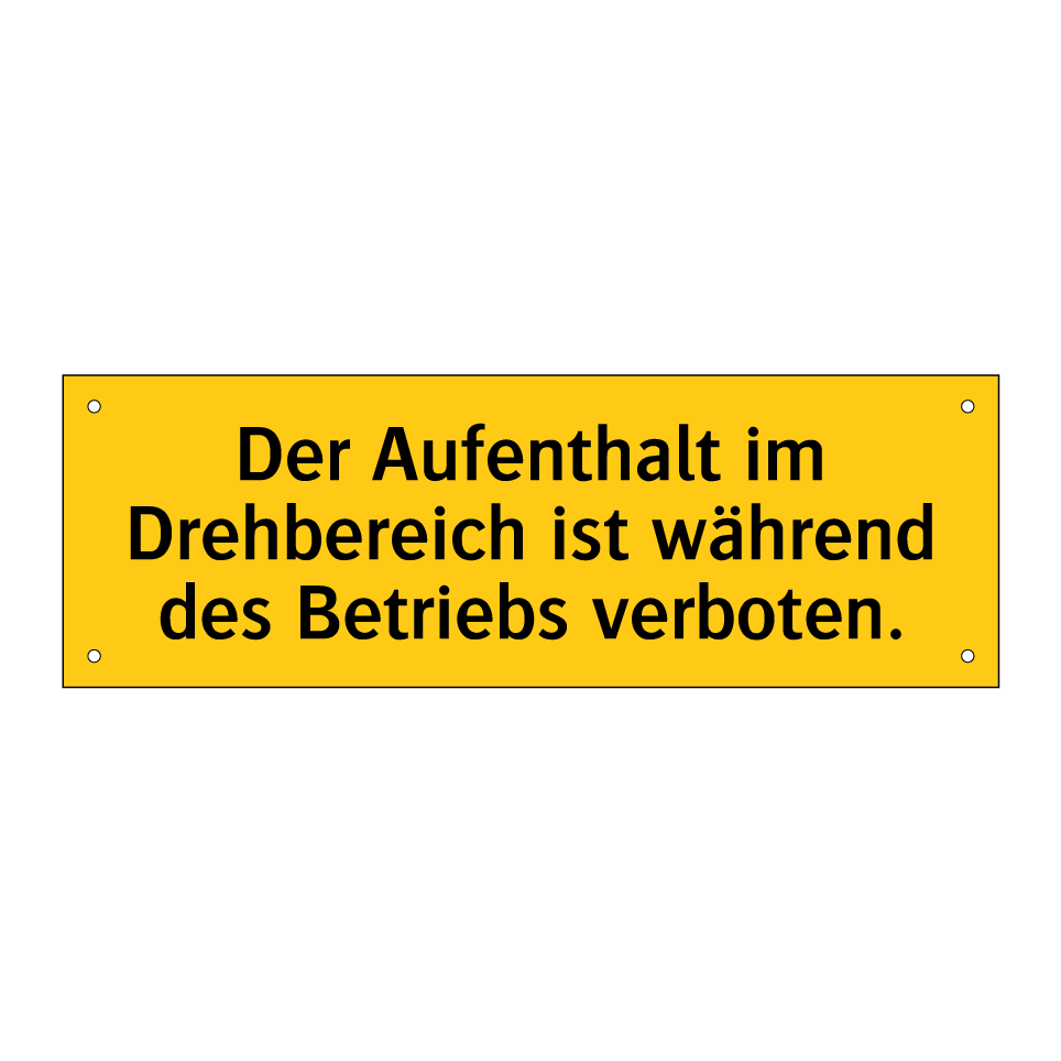 Warnschild mit dem Text Der Aufenthalt im Drehbereich ist während des Betriebs verboten.