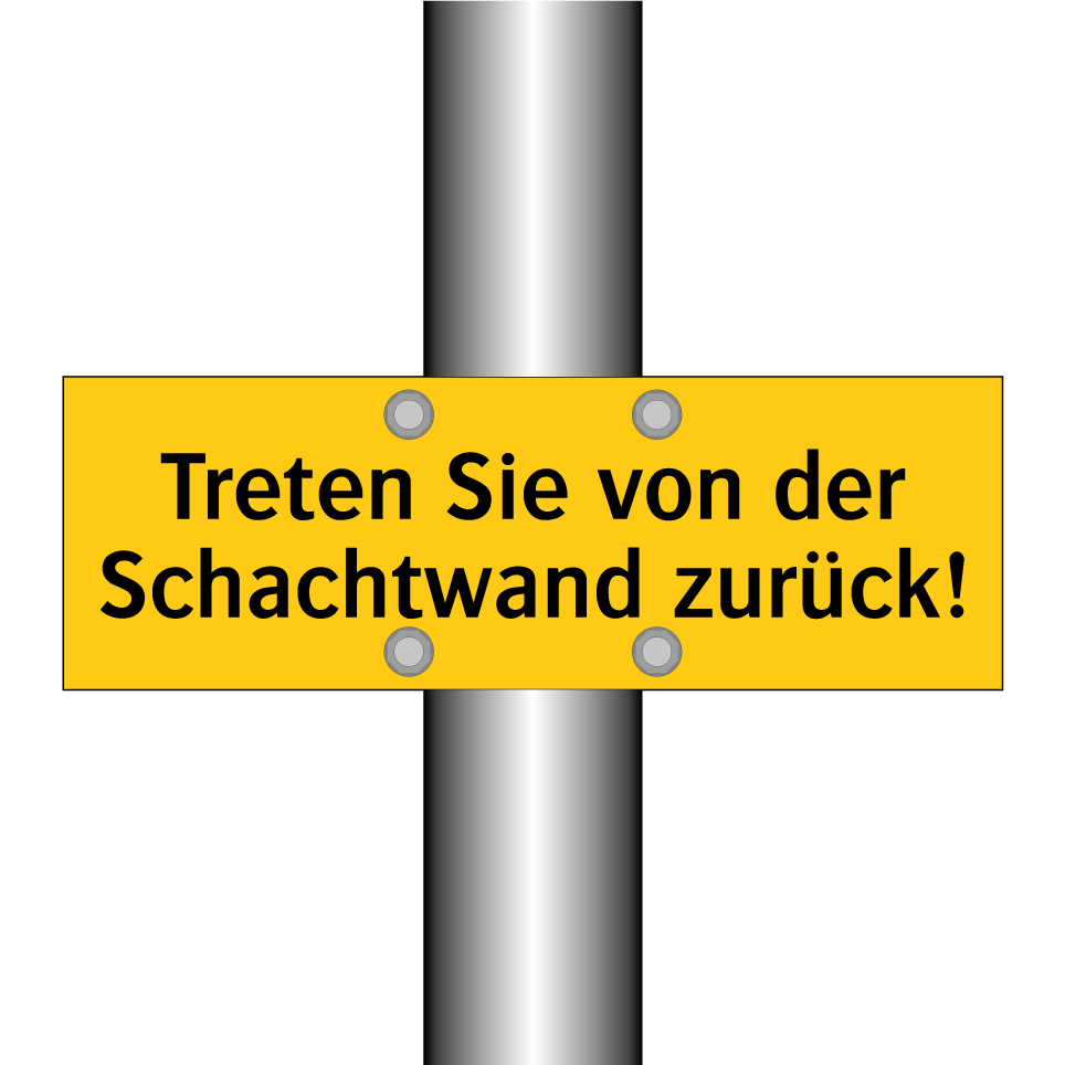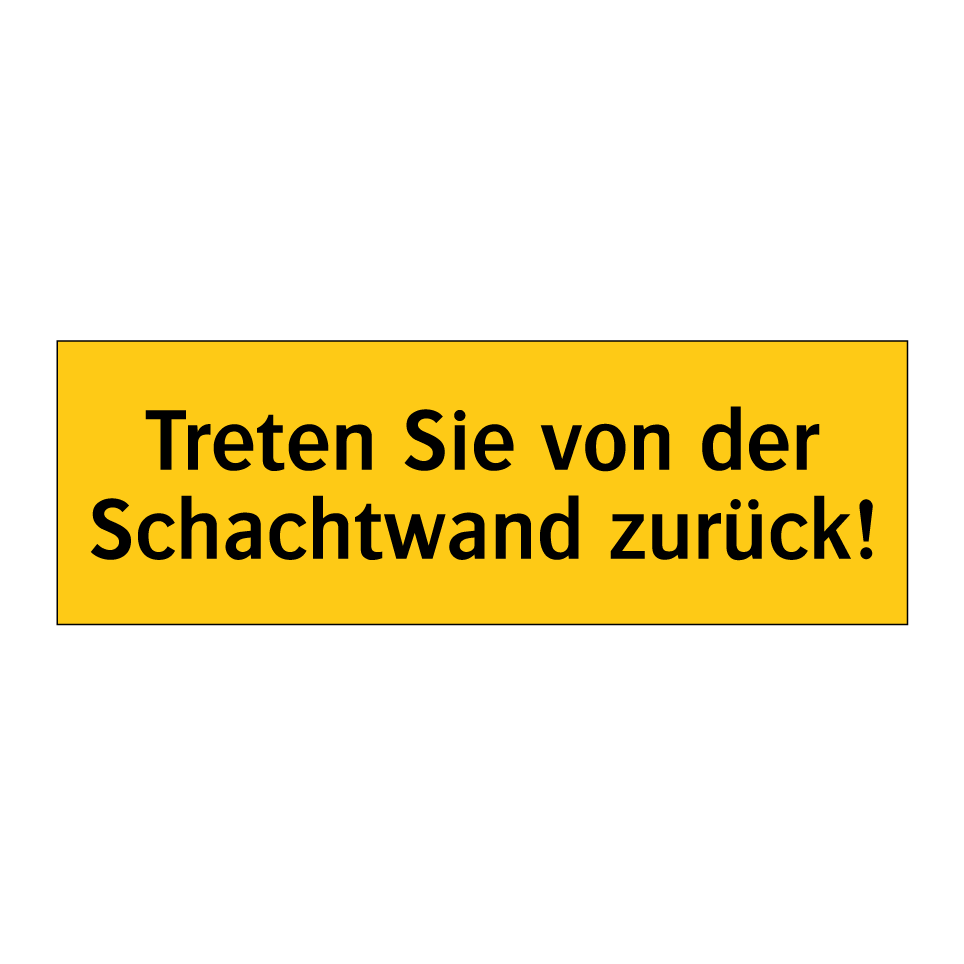 Warnschild mit dem Text Treten Sie von der Schachtwand zurück!