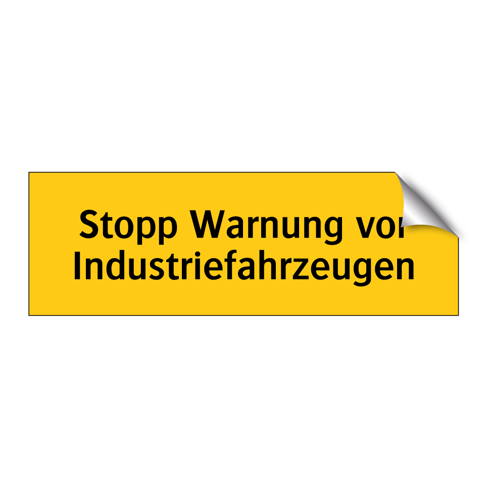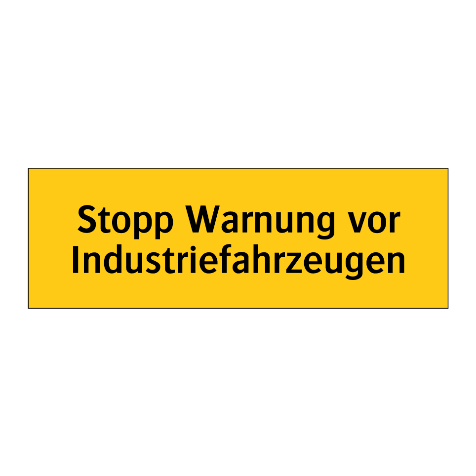 Warnschild mit dem Text Stopp Warnung vor Industriefahrzeugen
