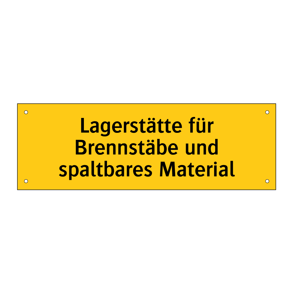 Warnschild mit dem Text Lagerstätte für Brennstäbe und spaltbares Material