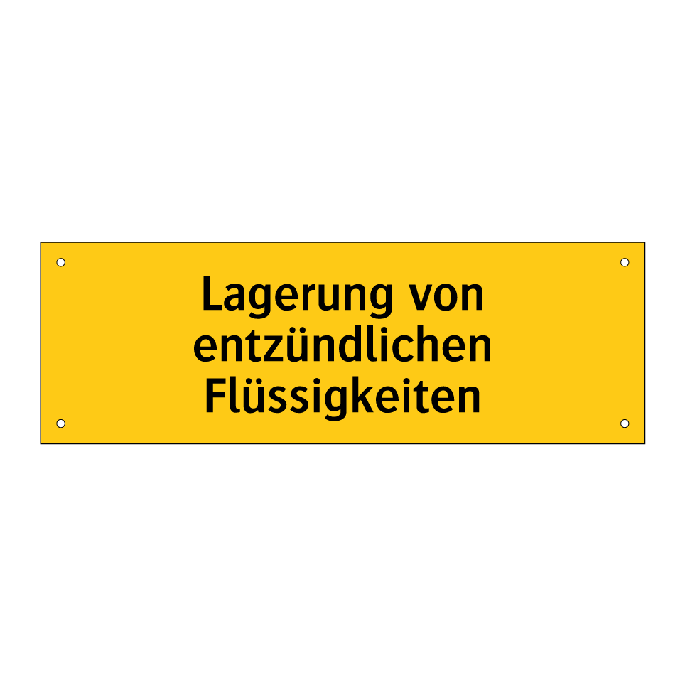 Warnschild mit dem Text Lagerung von entzündlichen Flüssigkeiten