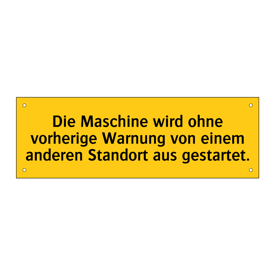 Warnschild mit dem Text Die Maschine wird ohne vorherige Warnung von einem anderen Standort aus gestartet.