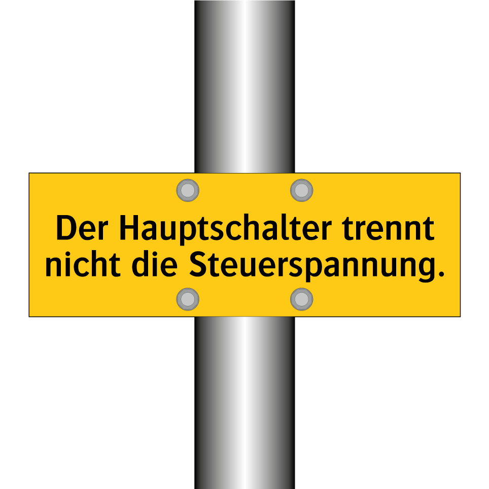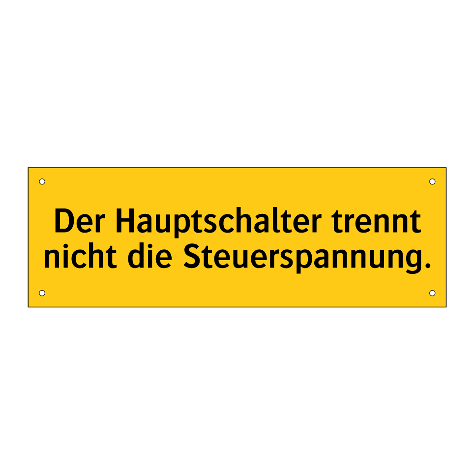 Warnschild mit dem Text Der Hauptschalter trennt nicht die Steuerspannung.