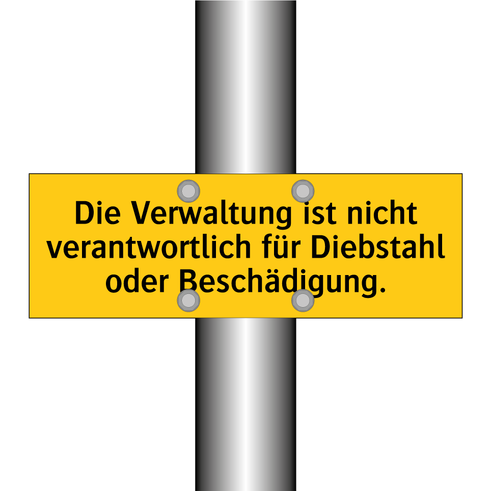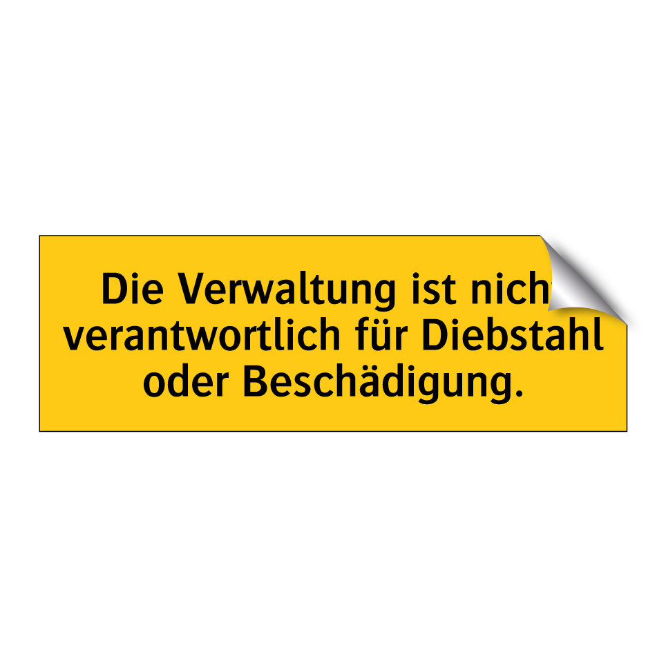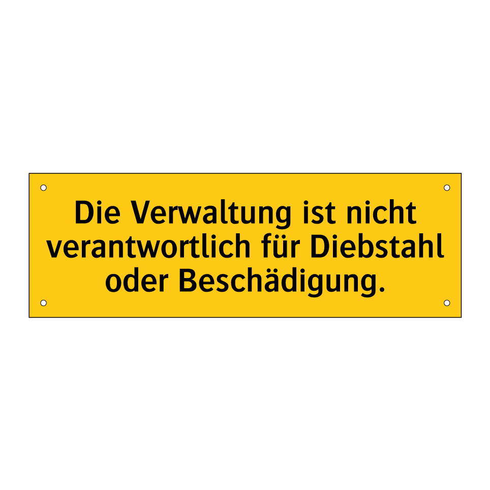 Warnschild mit dem Text Die Verwaltung ist nicht verantwortlich für Diebstahl oder Beschädigung.