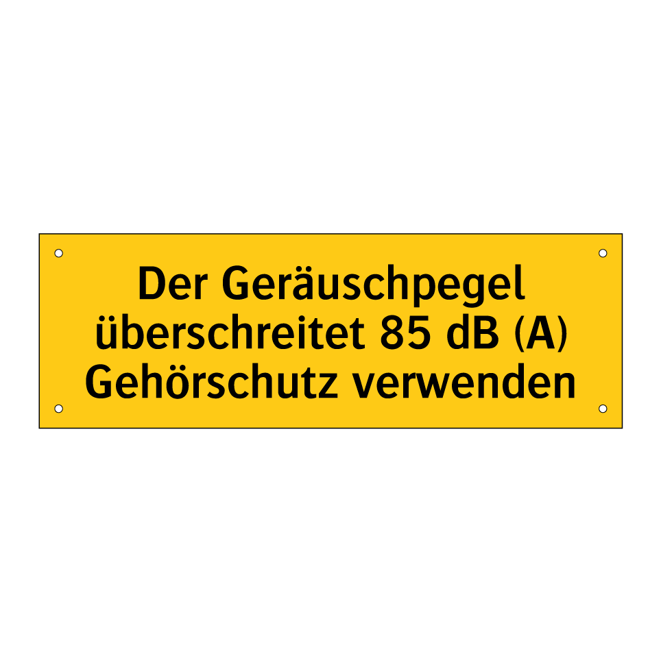 Warnschild mit dem Text Der Geräuschpegel überschreitet 85 dB (A) Gehörschutz verwenden