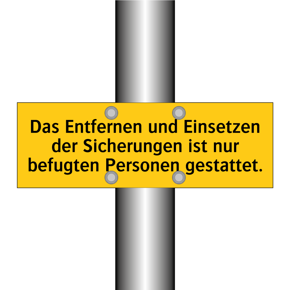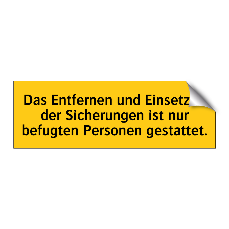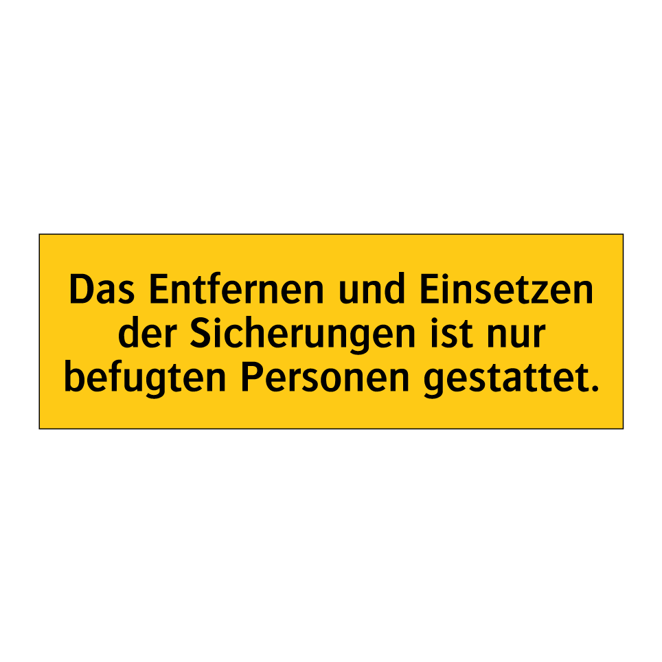 Warnschild mit dem Text Das Entfernen und Einsetzen der Sicherungen ist nur befugten Personen gestattet.