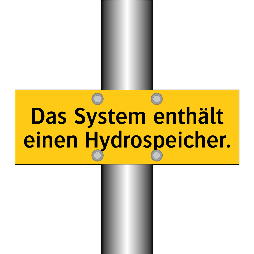 Warnschild mit dem Text Das System enthält einen Hydrospeicher.