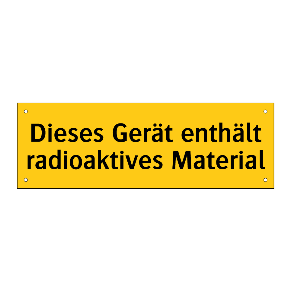 Warnschild mit dem Text Dieses Gerät enthält radioaktives Material
