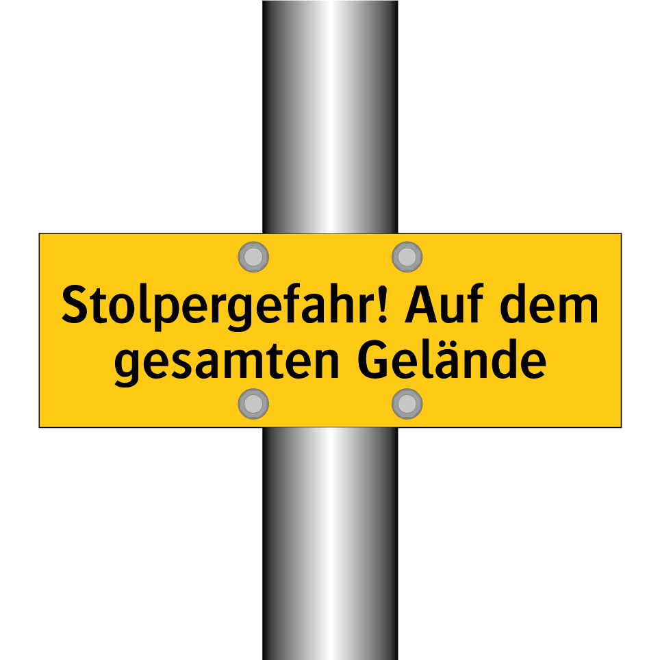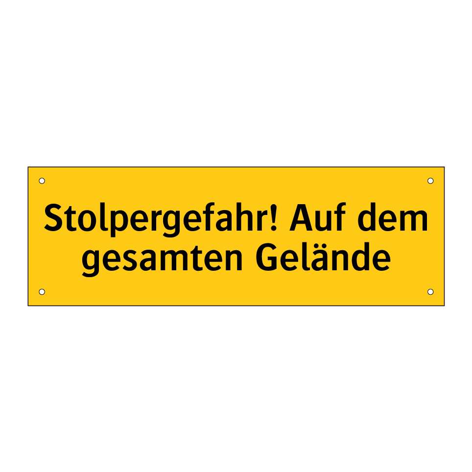 Warnschild mit dem Text Stolpergefahr! Auf dem gesamten Gelände