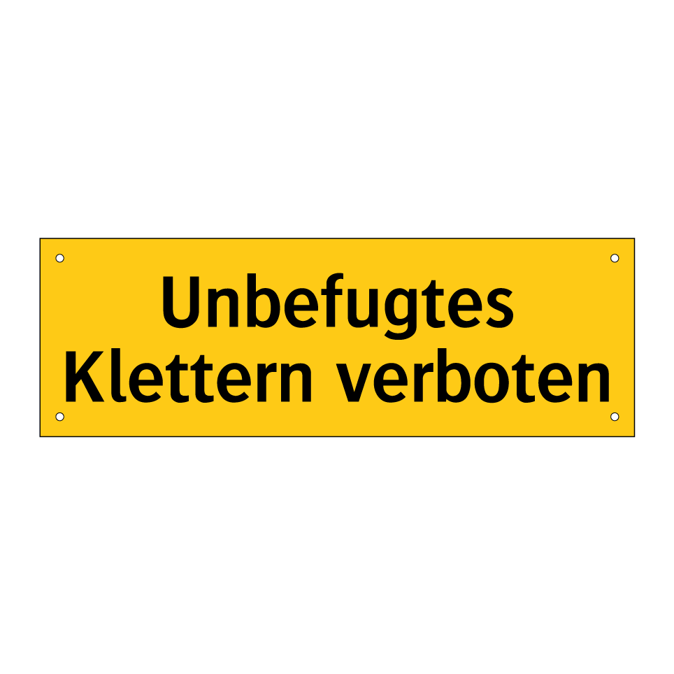 Warnschild mit dem Text Unbefugtes Klettern verboten