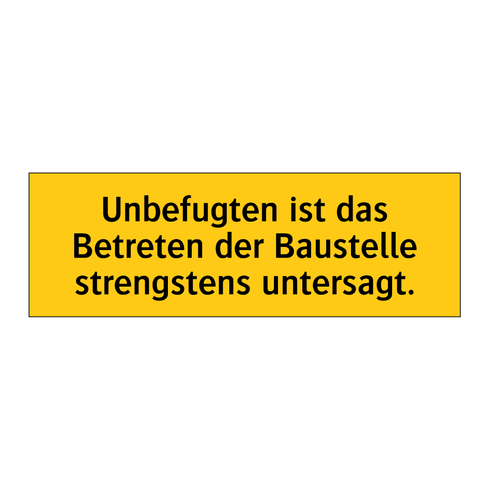 Warnschild mit dem Text Unbefugten ist das Betreten der Baustelle strengstens untersagt.