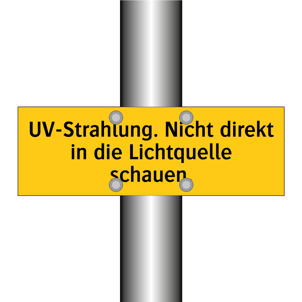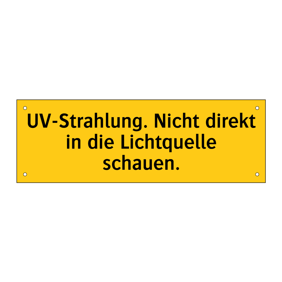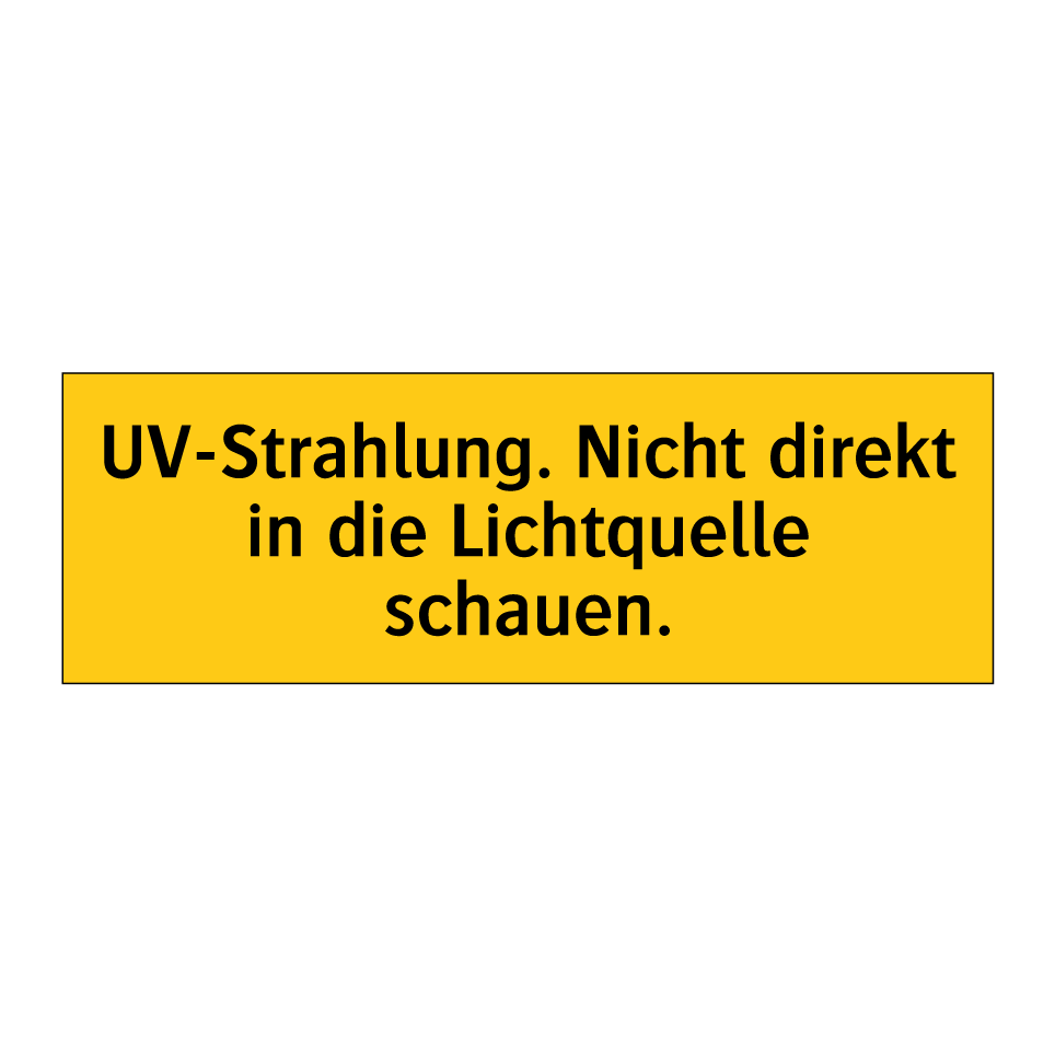 Warnschild mit dem Text UV-Strahlung. Nicht direkt in die Lichtquelle schauen.