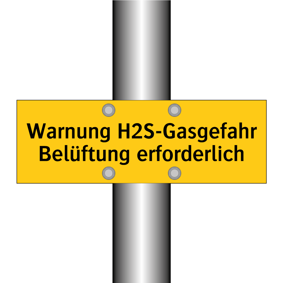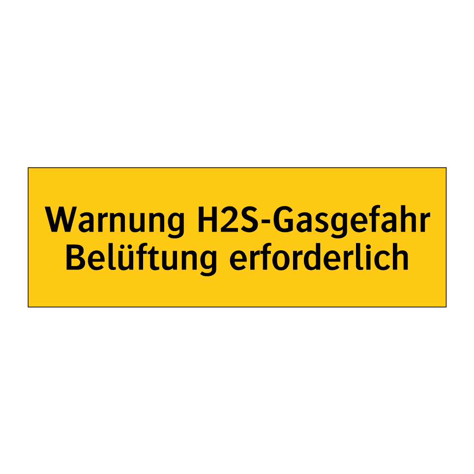 Warnschild mit dem Text Warnung H2S-Gasgefahr Belüftung erforderlich