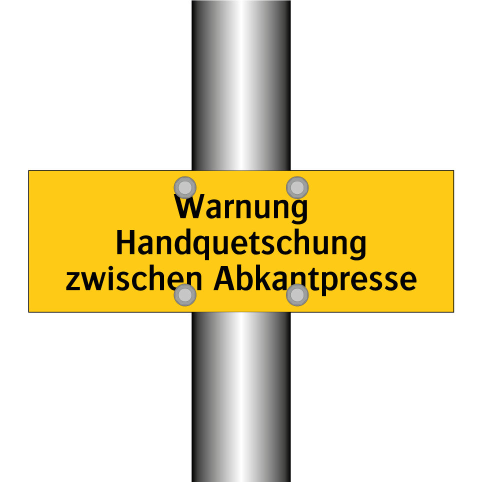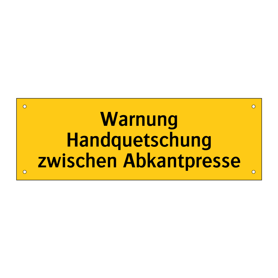 Warnschild mit dem Text Warnung Handquetschung zwischen Abkantpresse