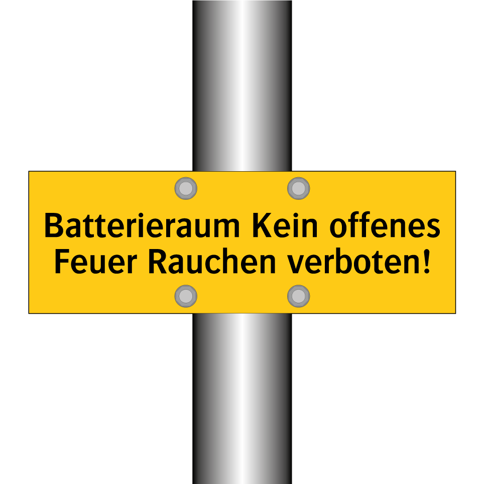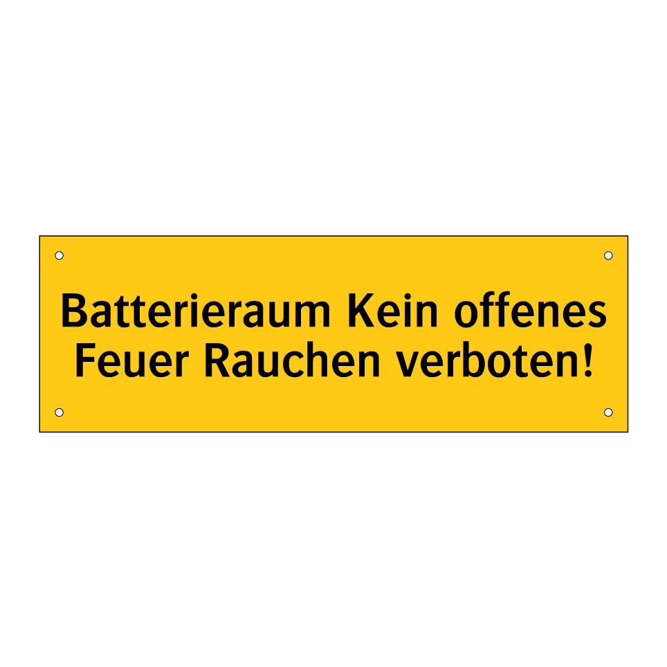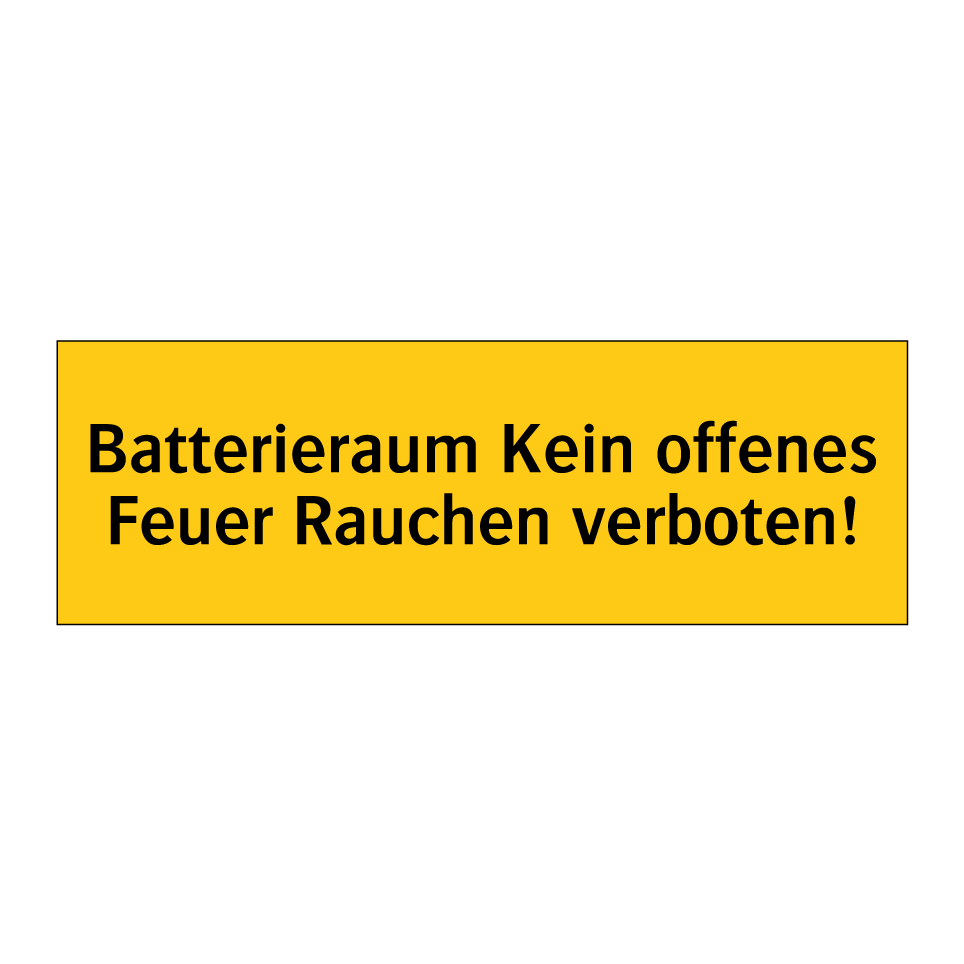 Warnschild mit dem Text Batterieraum Kein offenes Feuer Rauchen verboten!