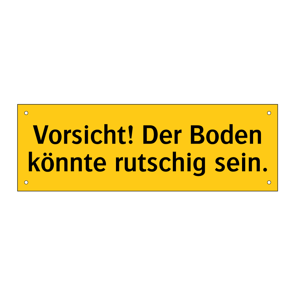 Warnschild mit dem Text Vorsicht! Der Boden könnte rutschig sein.