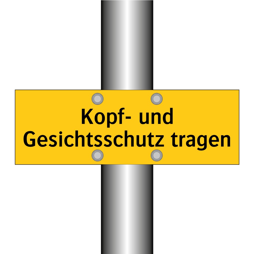 Warnschild mit dem Text Kopf- und Gesichtsschutz tragen
