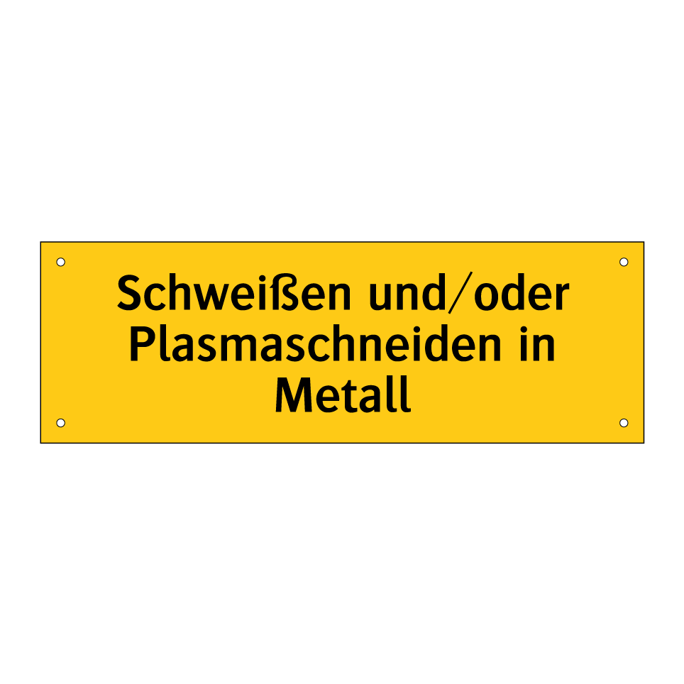 Warnschild mit dem Text Schweißen und/oder Plasmaschneiden in Metall