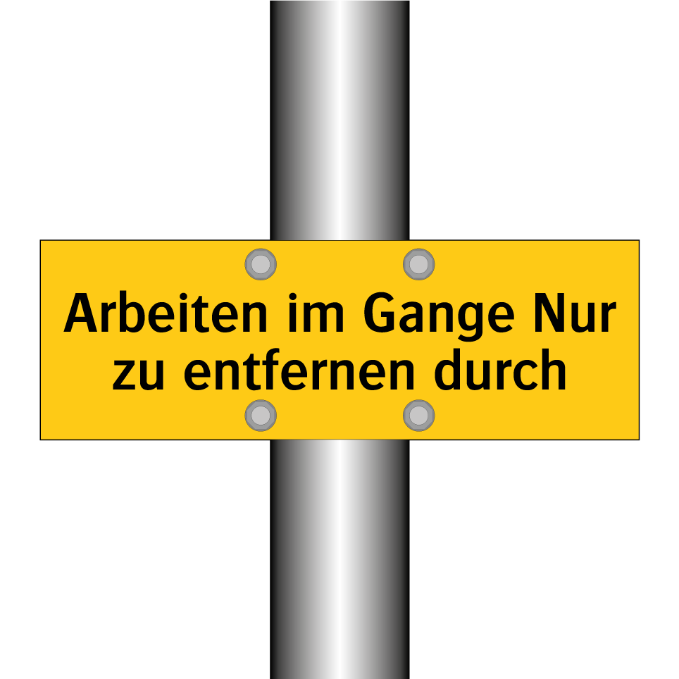 Warnschild mit dem Text Arbeiten im Gange Nur zu entfernen durch