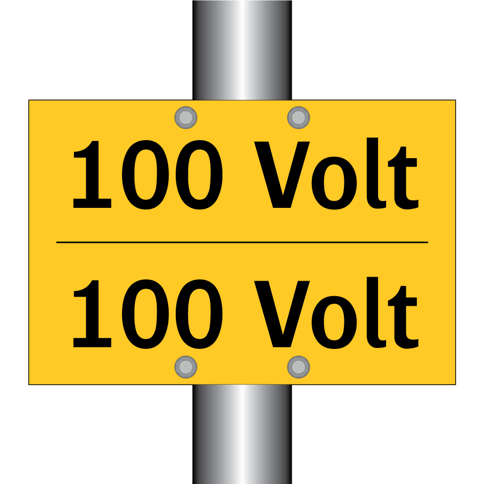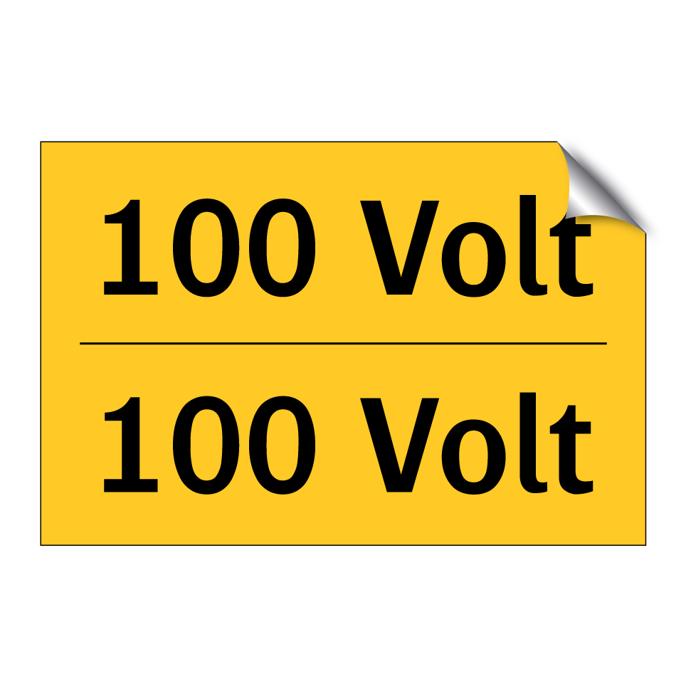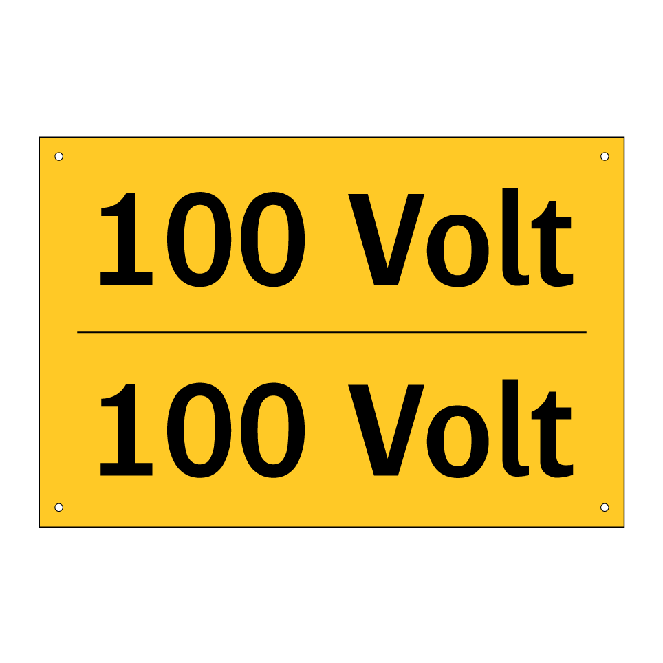 Zweisprachiges Warnschild mit deutschem Text 100 Volt und englischem Text 100 Volt