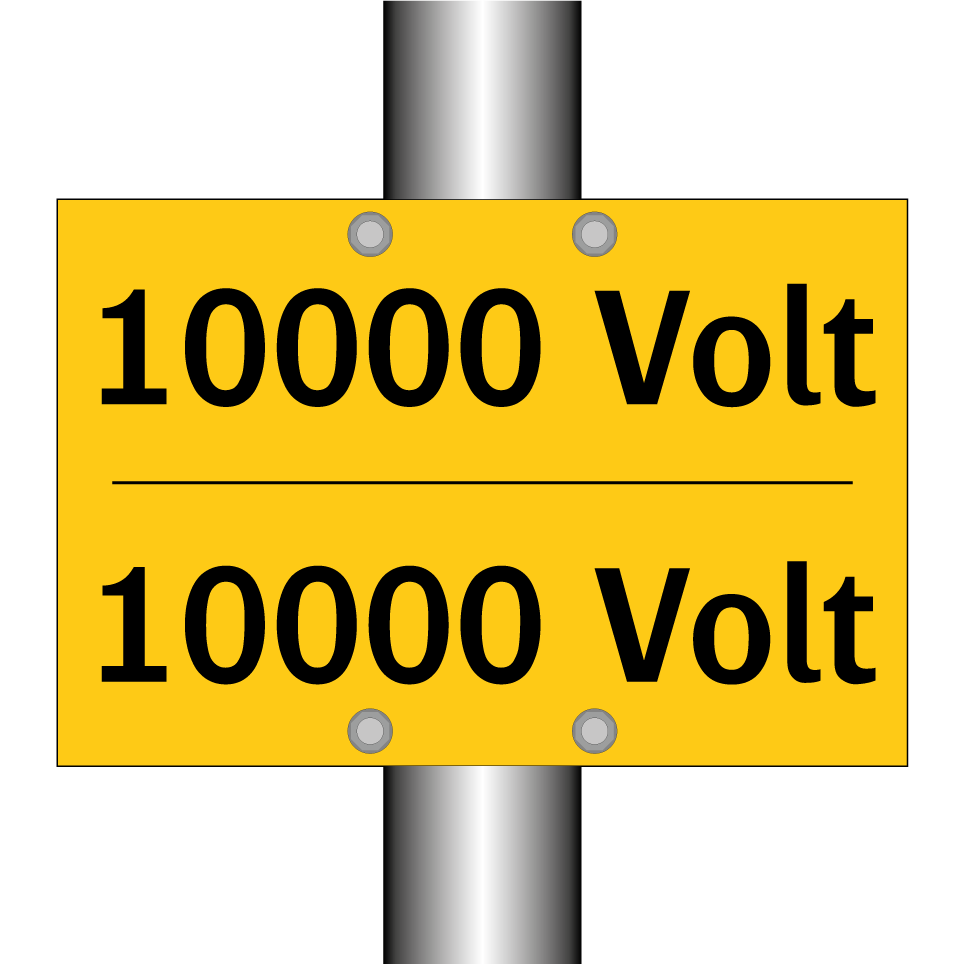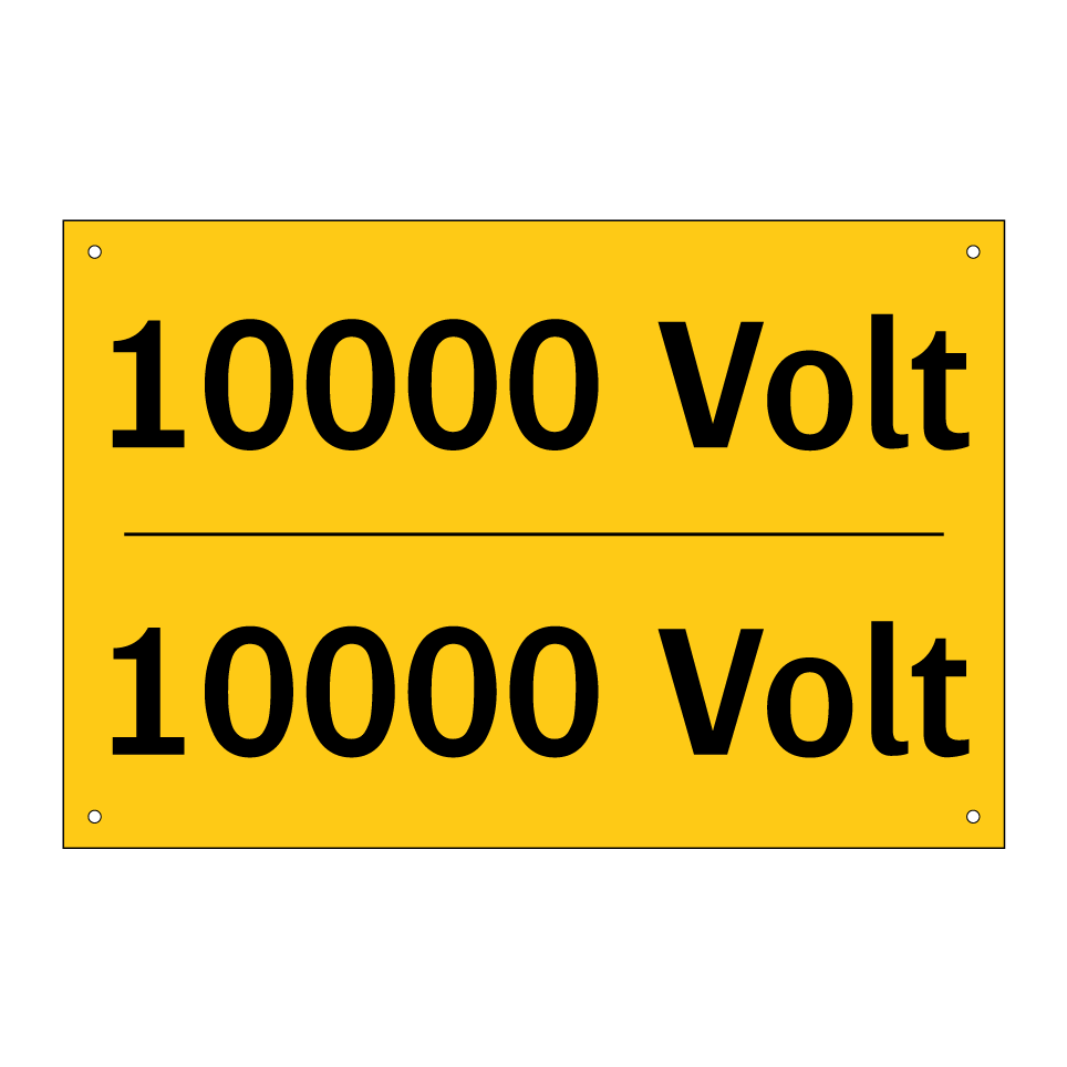 Zweisprachiges Warnschild mit deutschem Text 10000 Volt und englischem Text 10000 Volt