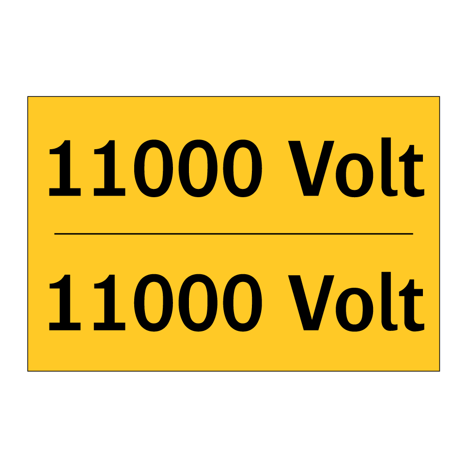 Zweisprachiges Warnschild mit deutschem Text 11000 Volt und englischem Text 11000 Volt