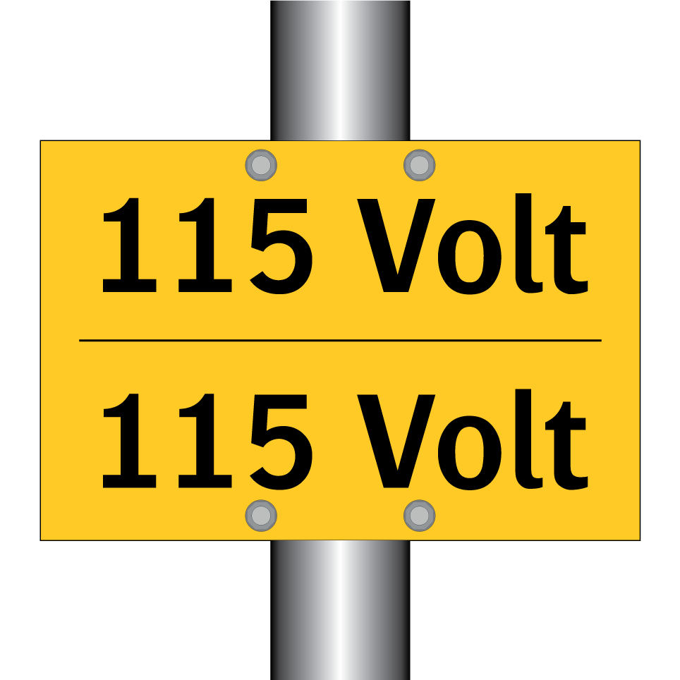 Zweisprachiges Warnschild mit deutschem Text 115 Volt und englischem Text 115 Volt