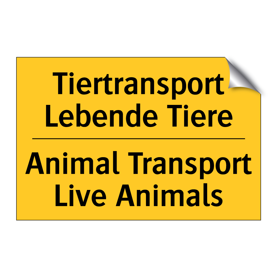 Zweisprachiges Warnschild mit deutschem Text Tiertransport Lebende Tiere und englischem Text Animal Transport Live Animals