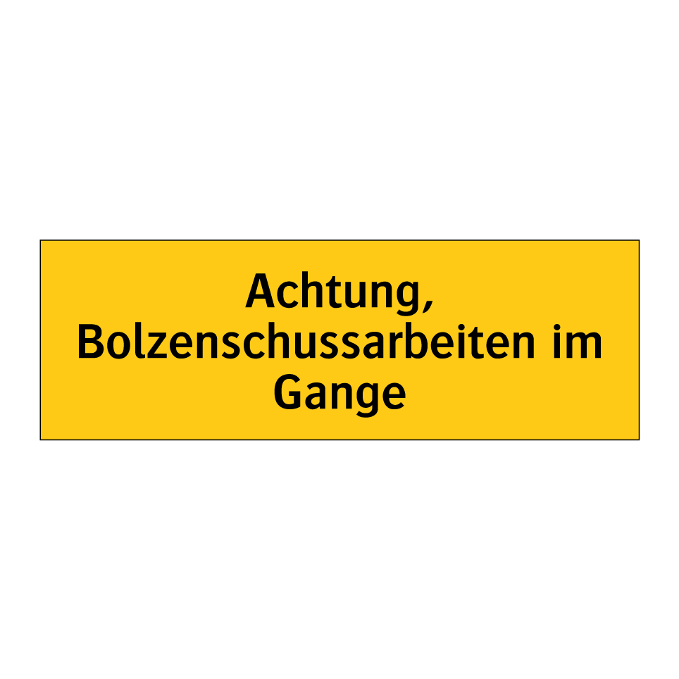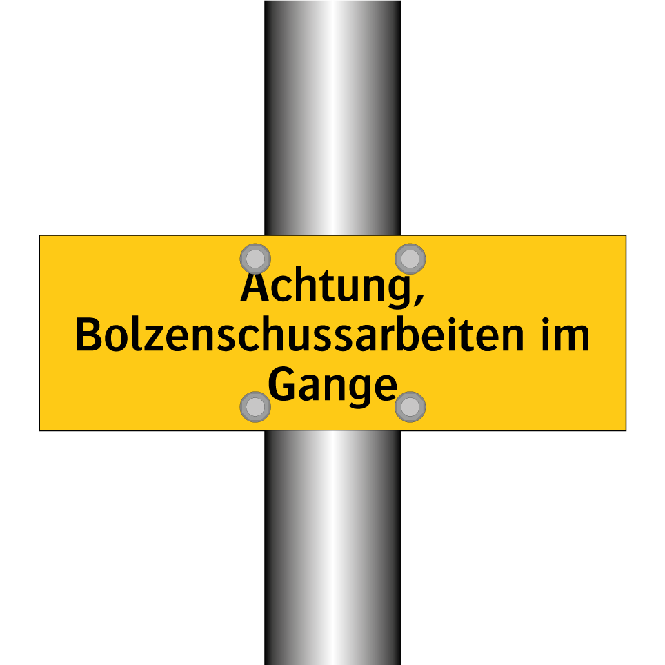 Warnschild mit dem Text Achtung, Bolzenschussarbeiten im Gange