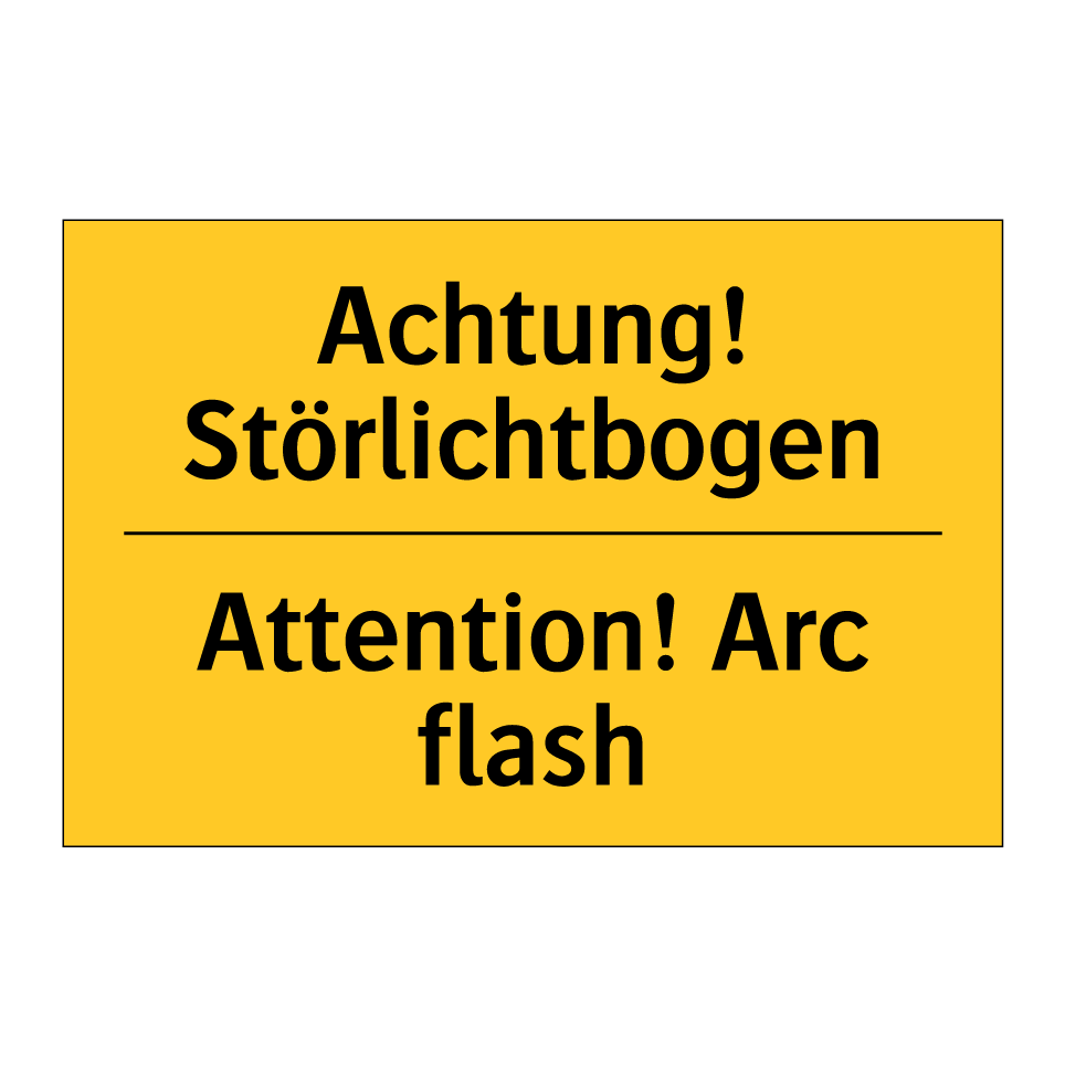 Zweisprachiges Warnschild mit deutschem Text Achtung! Störlichtbogen und englischem Text Attention! Arc flash
