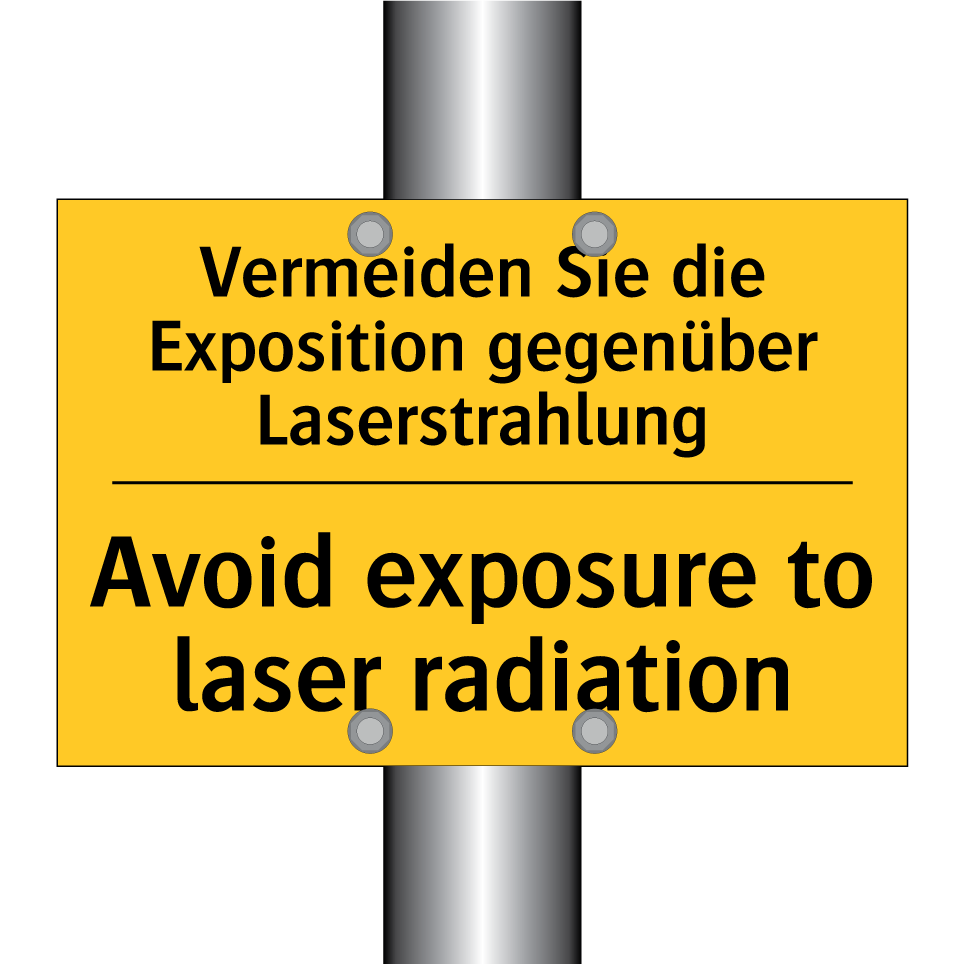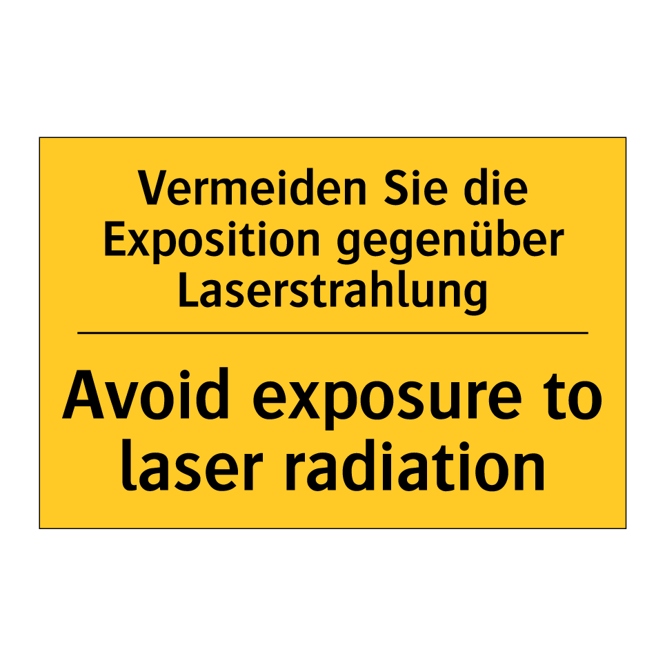 Zweisprachiges Warnschild mit deutschem Text Vermeiden Sie die Exposition gegenüber Laserstrahlung und englischem Text Avoid exposure to laser radiation