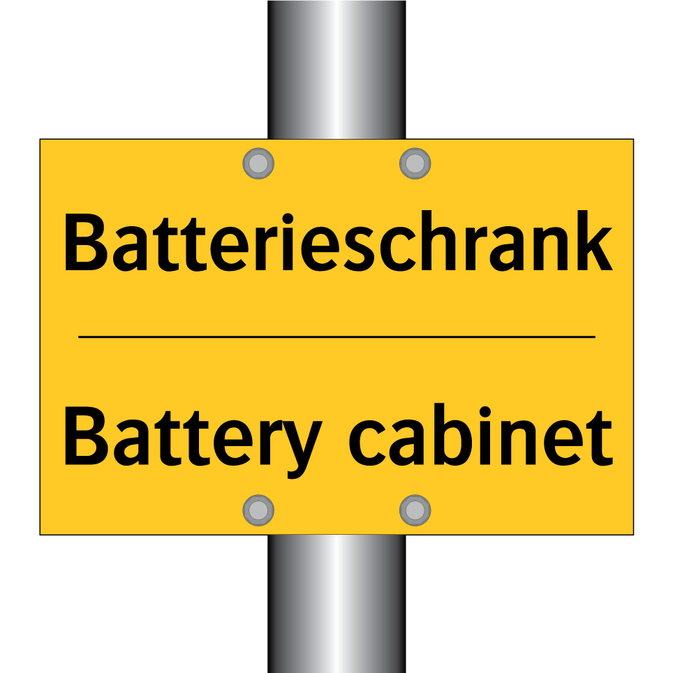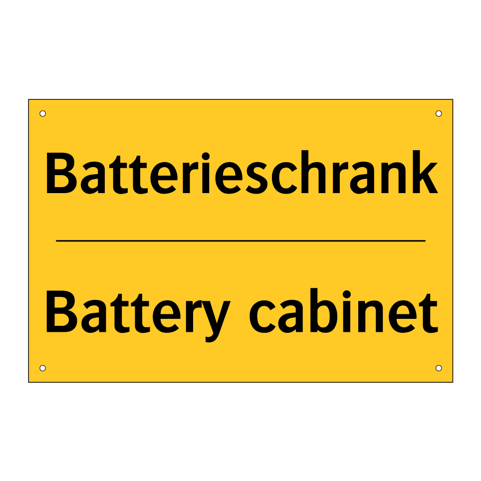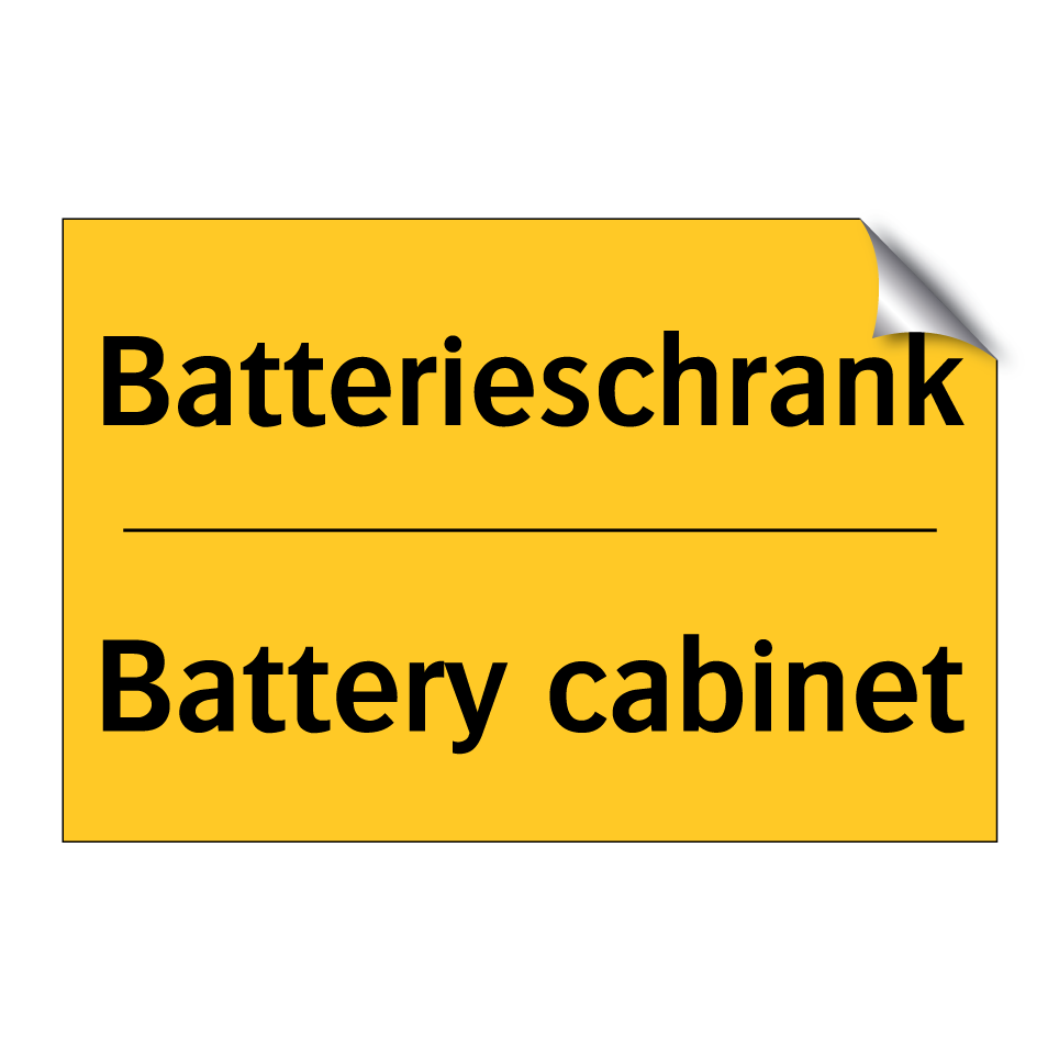 Zweisprachiges Warnschild mit deutschem Text Batterieschrank und englischem Text Battery cabinet