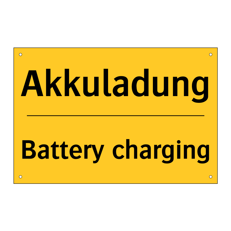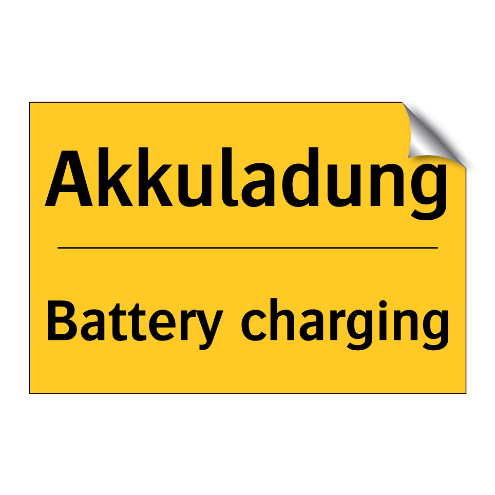 Zweisprachiges Warnschild mit deutschem Text Akkuladung und englischem Text Battery charging