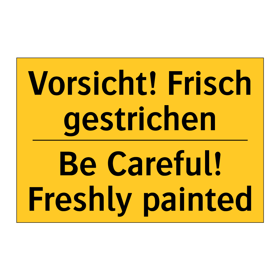 Zweisprachiges Warnschild mit deutschem Text Vorsicht! Frisch gestrichen und englischem Text Be Careful! Freshly painted