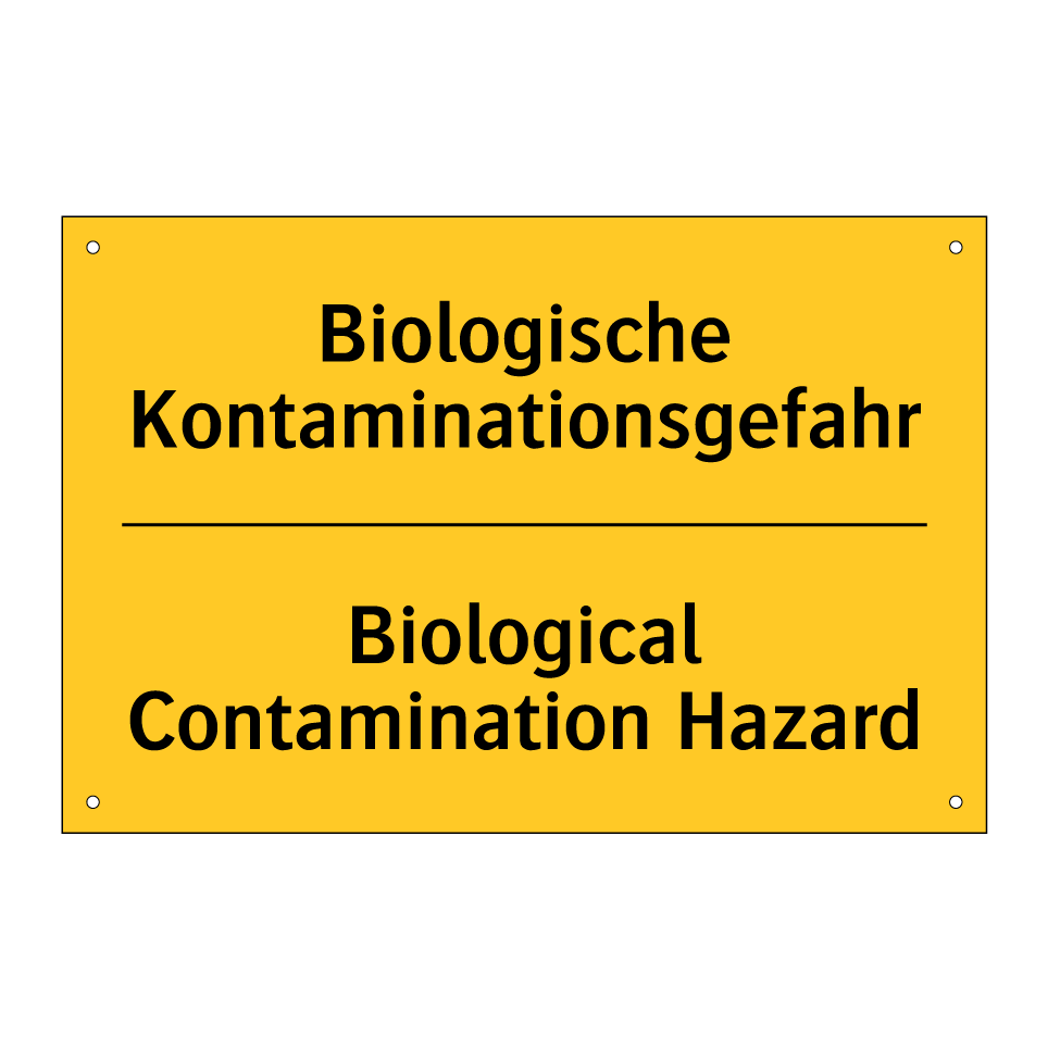Zweisprachiges Warnschild mit deutschem Text Biologische Kontaminationsgefahr und englischem Text Biological Contamination Hazard