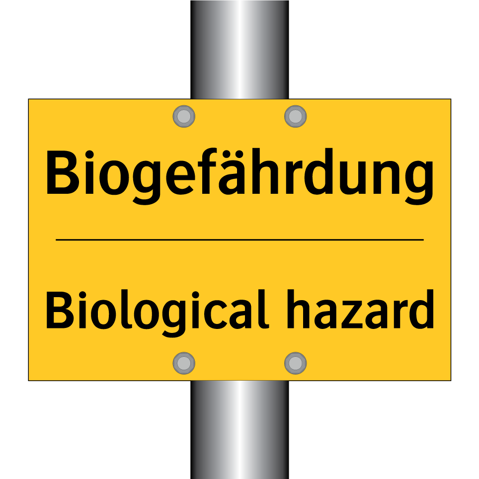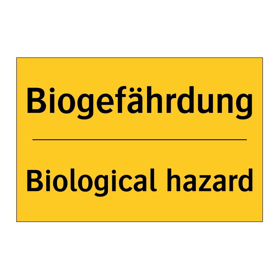 Zweisprachiges Warnschild mit deutschem Text Biogefährdung und englischem Text Biological hazard