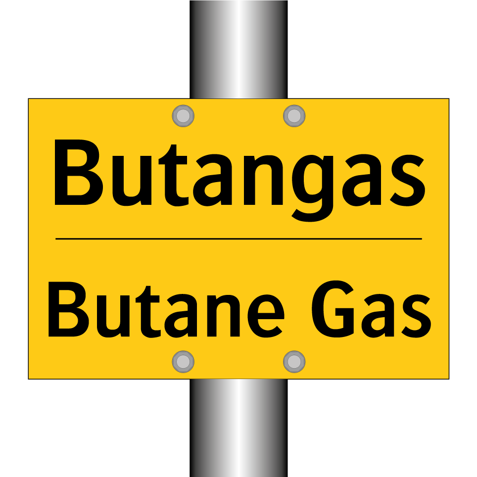 Zweisprachiges Warnschild mit deutschem Text Butangas und englischem Text Butane Gas