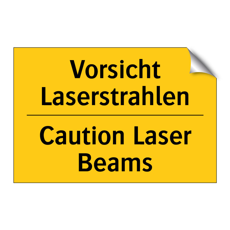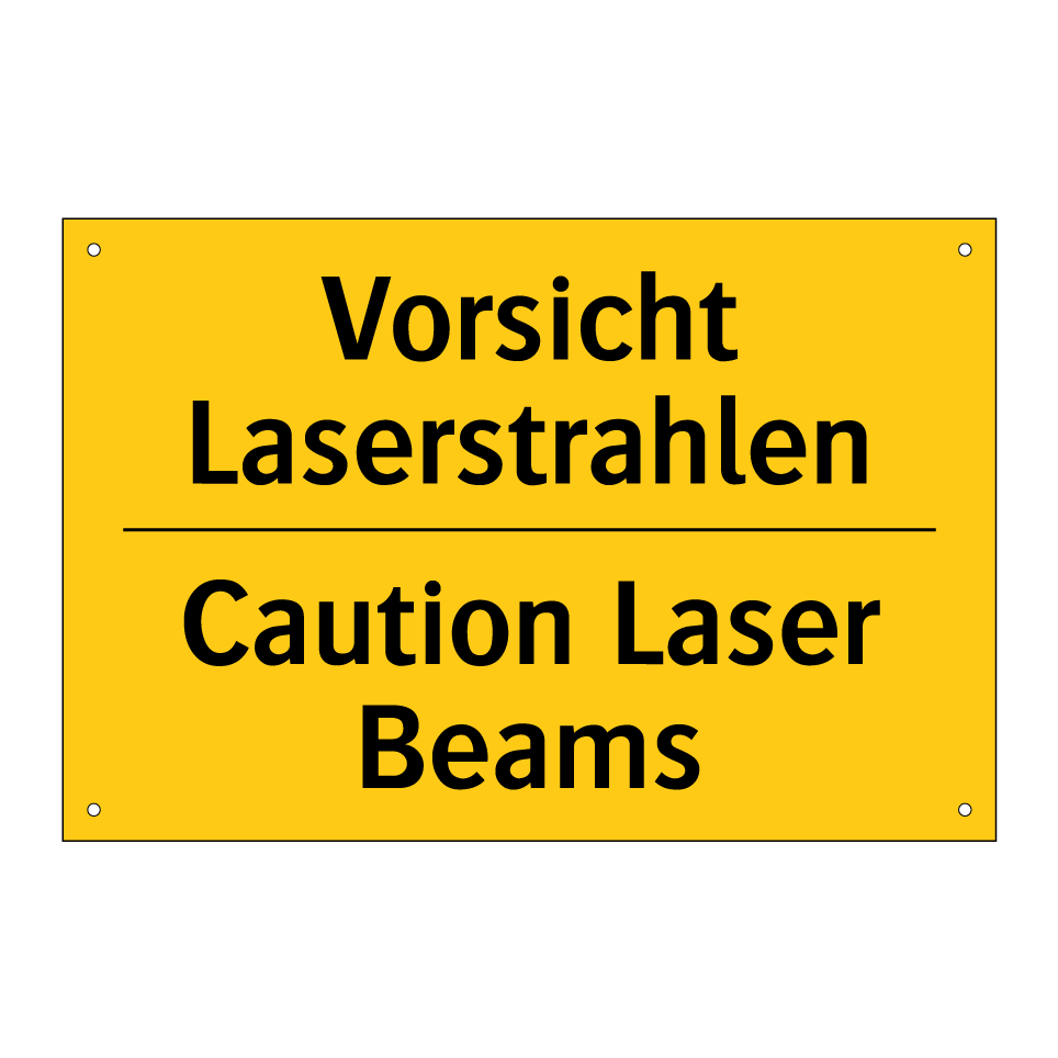 Zweisprachiges Warnschild mit deutschem Text Vorsicht Laserstrahlen und englischem Text Caution Laser Beams